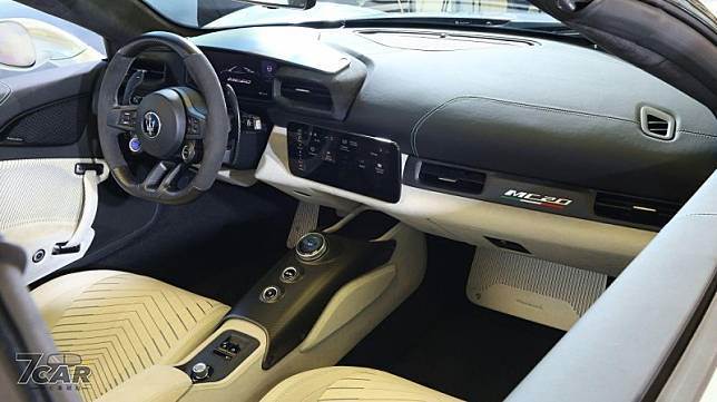 內裝方面,MC20 Cielo 座艙內的碳纖維結構及前輪構造一覽無遺,配有新型方向盤撥桿、燈具開關介面,另外還提供自動緊急煞車系統、交通標誌識別系統和 360 度環景。車主也可選配屢獲殊榮 High Premium Sonus faber 音響系統,12 支揚聲器平均分布于車室各處,提供駕駛與乘客出色的音質。