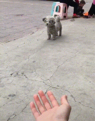 她伸出手,輕聲呼喚這個小家伙,本以為這只狗狗會屁顛屁顛地跑向自己,沒想到小家伙走了幾步,居然停下來不動了。