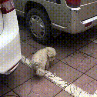 鏟屎官氣喘吁吁地跟在它的身后,看著它鉆進了一輛汽車底下。