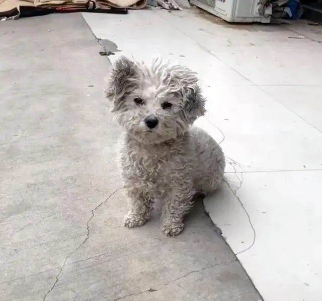 今年五月初,江蘇省徐州市,一位鏟屎官外出散步時,在馬路邊上看到一只汪星人,雖然它渾身臟得不成樣子,但依然能夠辨認出它是一只漂亮的狗子,貌似是只比熊犬。