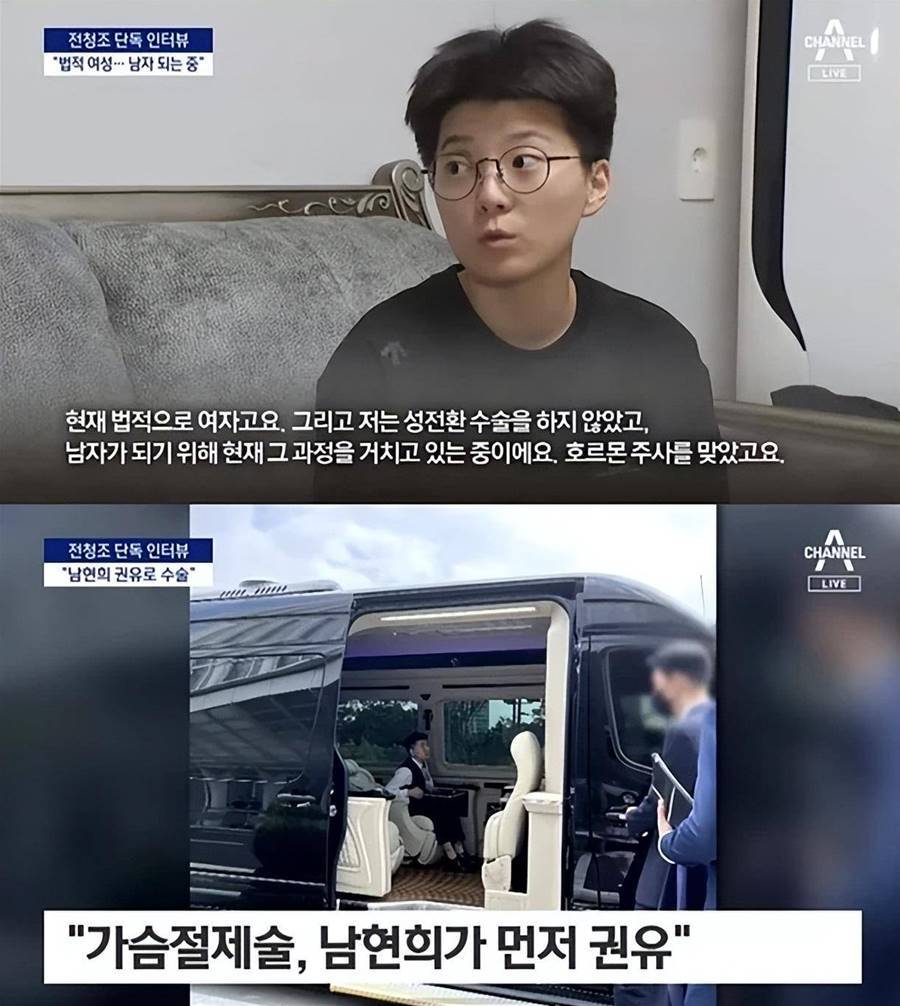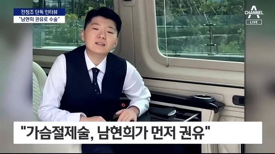 據稱,去年7月左右,在南賢熙的建議下,她接受了[乳.房]切除手術,全清祖說,南賢熙一直告訴我,「因為你的胸部,別人就會知道你是女人」,因為我真的很愛南賢熙,所以我也做出了一個重大決定,去做了手術。