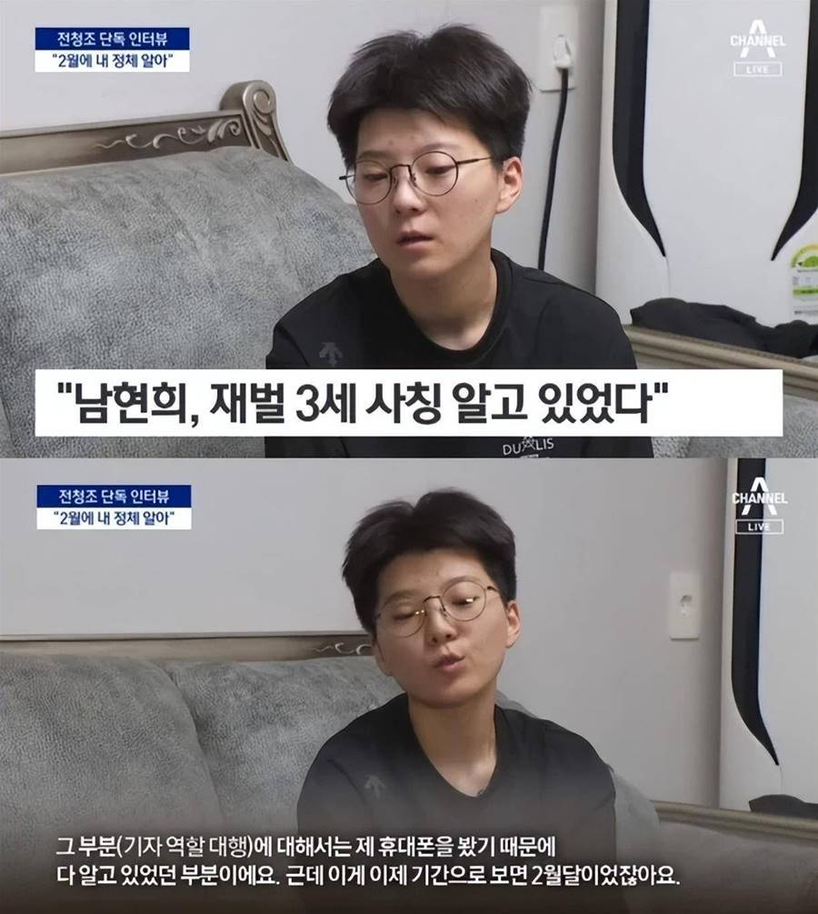 全清祖聲稱南賢熙很早就知道他不是財閥。南賢熙從2月份起就知道了自己的身份,南賢熙意識到我雇傭了一名代理記者來冒充第三代財閥,并且當時我就說出了全部真相。我目前在法律上是一名女性,我沒有進行變性手術,我目前正在經歷成為一名男性的過程,我已經接受了激素注射。