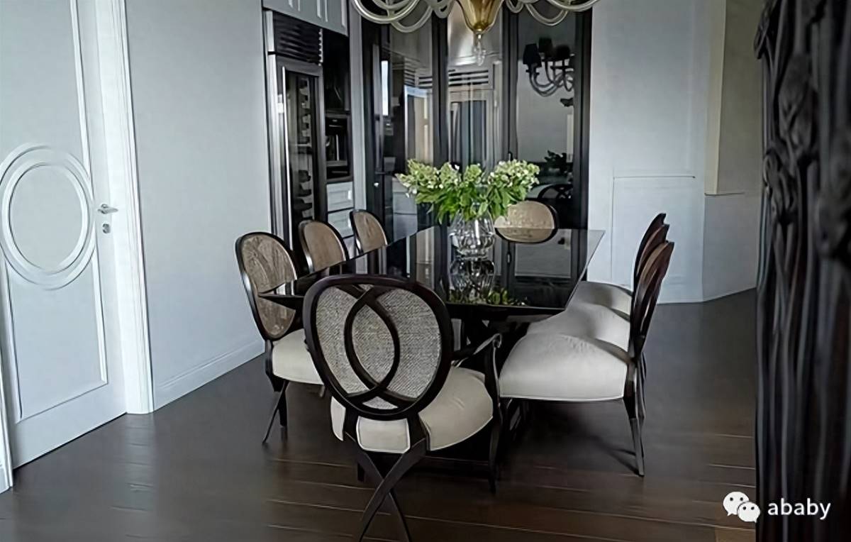 飯廳同樣設計感十足,無論飯桌、椅子、吊燈,還是一旁的長條凳子,都簡約而時髦。主人房擺放了設計獨特的雙人床,配上淡雅的窗簾以及別致的床頭燈,給人很舒服的感覺。總體來說,他們的家裝修得很氣派,不愧是演藝圈的佳偶。