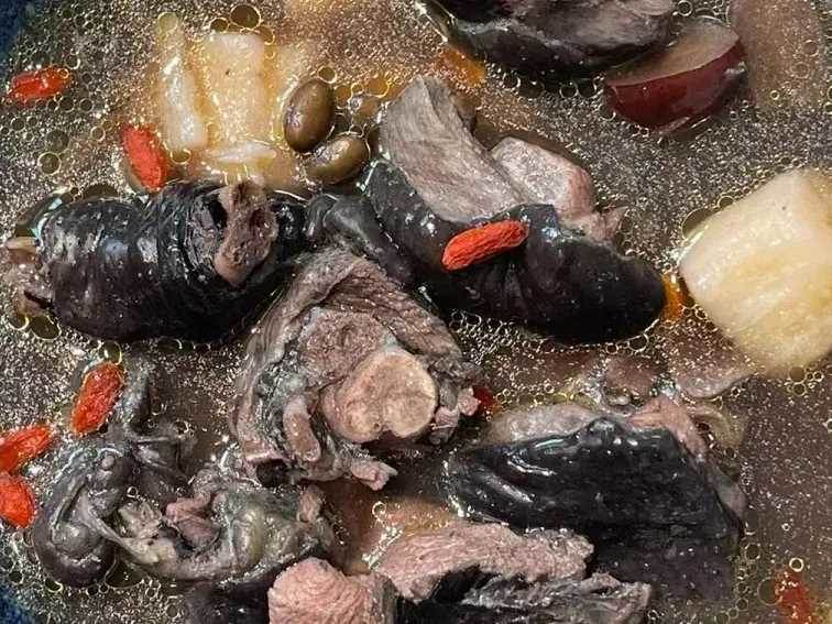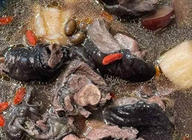 3、將烏雞、姜片和黑豆先放入湯鍋燉煮半個小時。接著再放入山藥和紅棗,繼續煮半個小時。