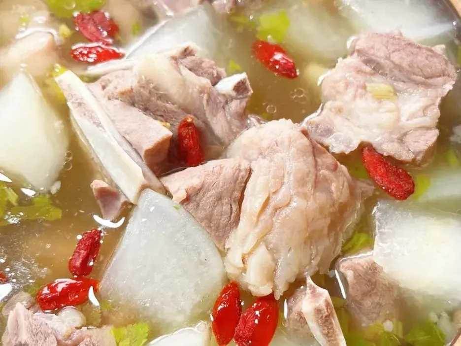 3、燉煮至羊肉軟爛,再放入白蘿卜繼續燉煮二十分鐘。燉煮好了之后,加入適量食鹽調味,撒上枸杞子和香菜,攪拌均勻即可出鍋開吃。