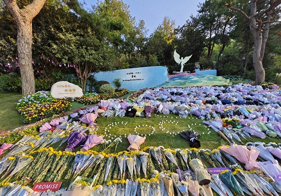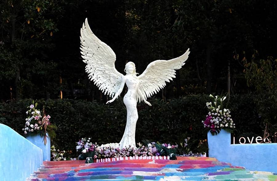 搜狐娛樂訊(視覺中國/圖) 近日,武漢石門峰紀念公園內,CoCo李玟紀念園佇立著鏡面不繡鋼天使雕像,COCO化身天使展開雙翅,造型優雅又漂亮。