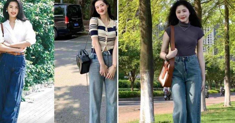 寬松的牛仔褲也有很多款式,比如闊腿褲、直筒褲、卷邊褲等等,都可以根據你的喜好來選擇。