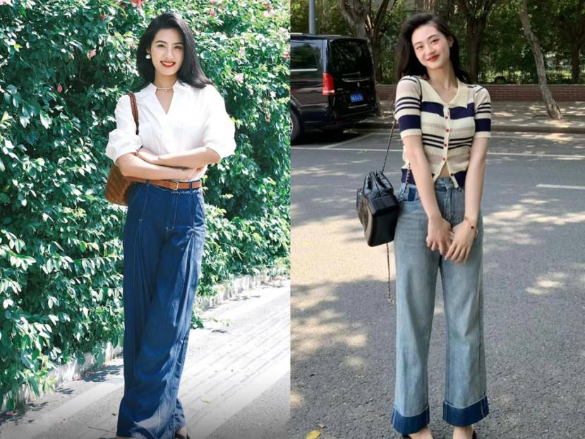 如果你想要更加休閑和隨性,可以選擇一條卷邊牛仔褲 ,這種款式可以露出你的腳踝,讓你的腿部看起來更加輕盈和靈動。
