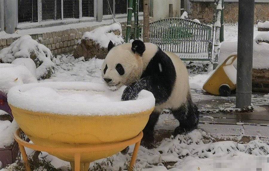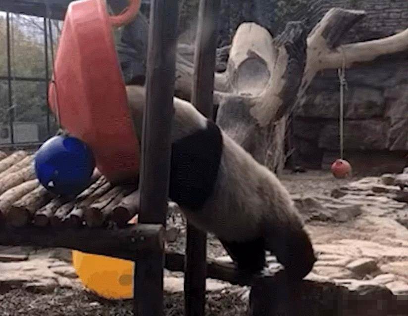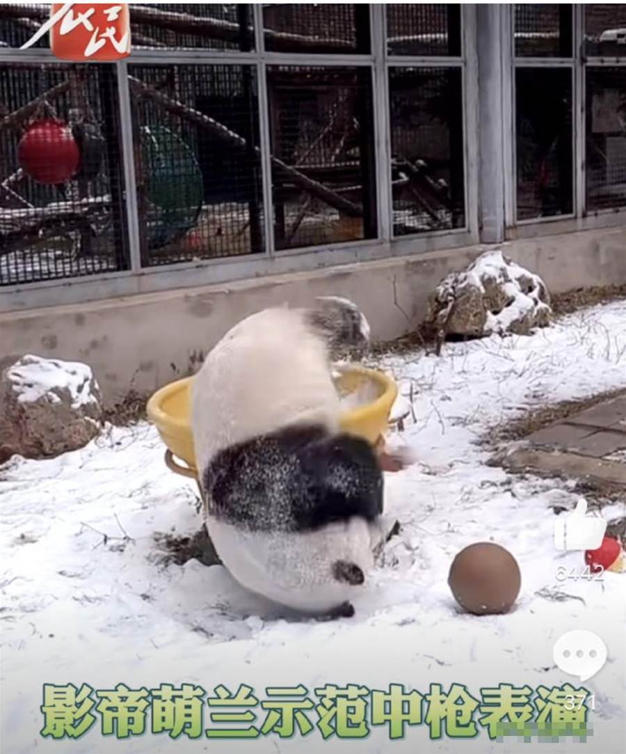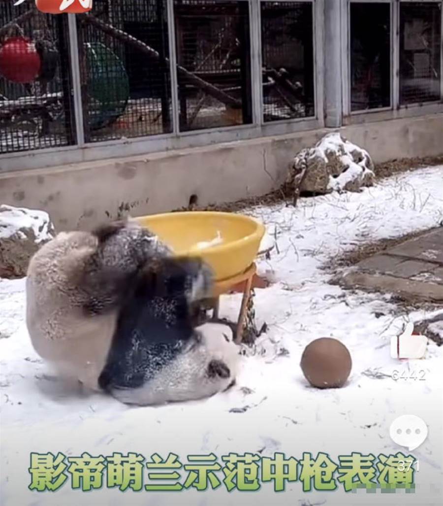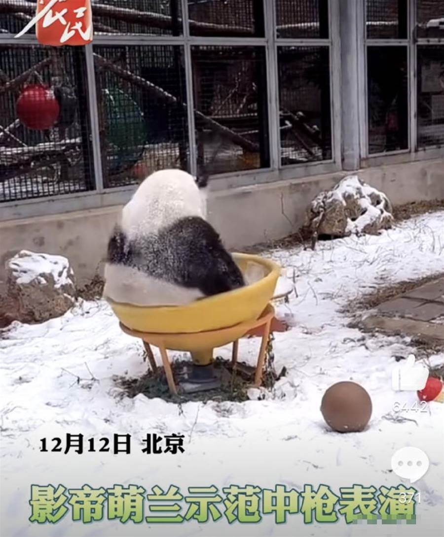 12月12日,北京動物園,大貓熊萌蘭出演最新動作大片《大黃碗槍戰》!