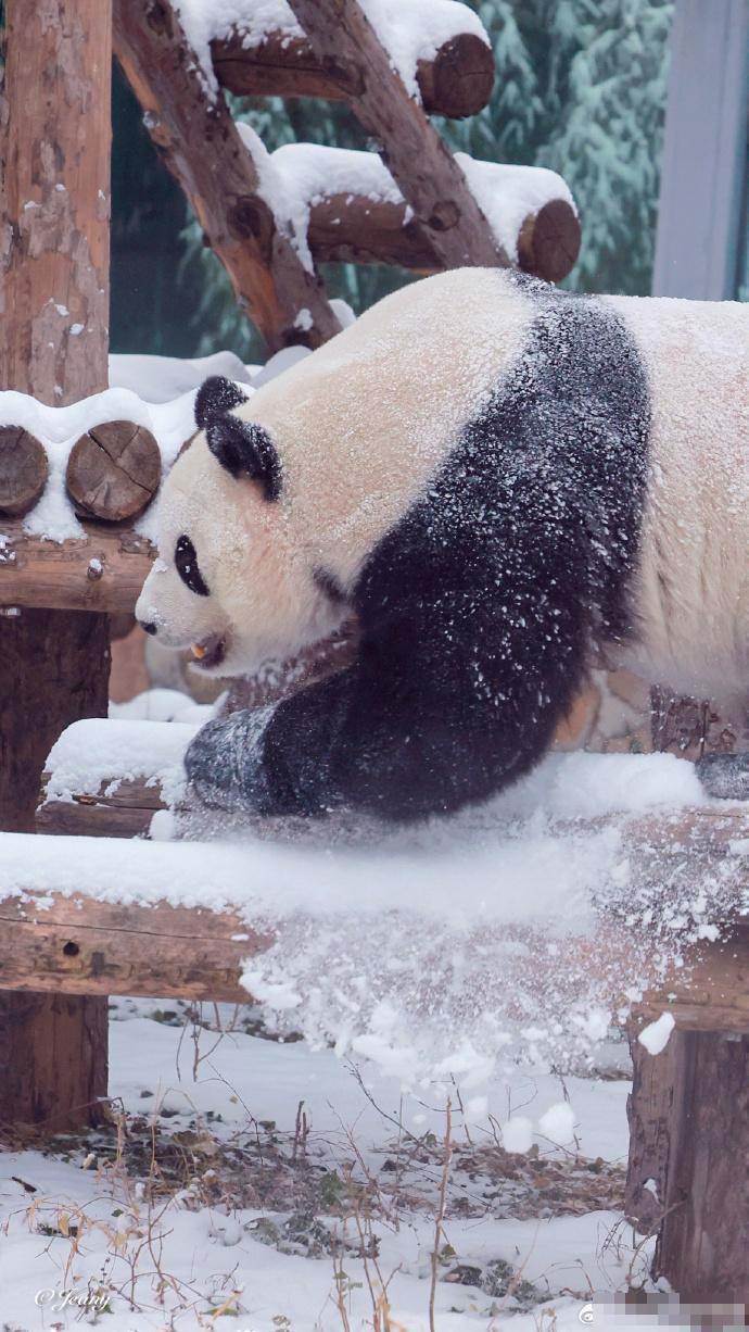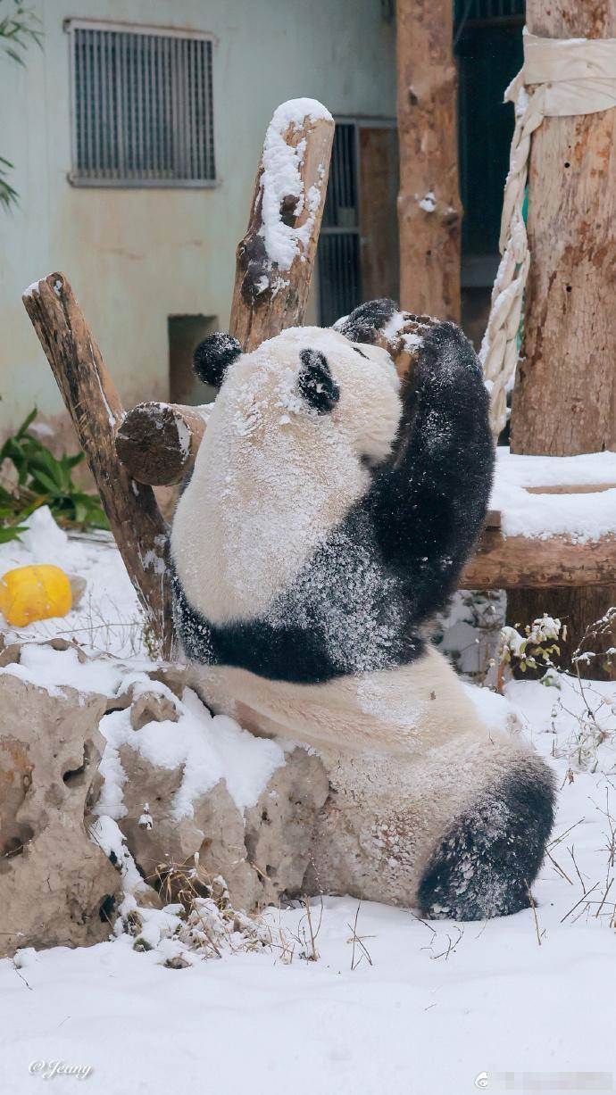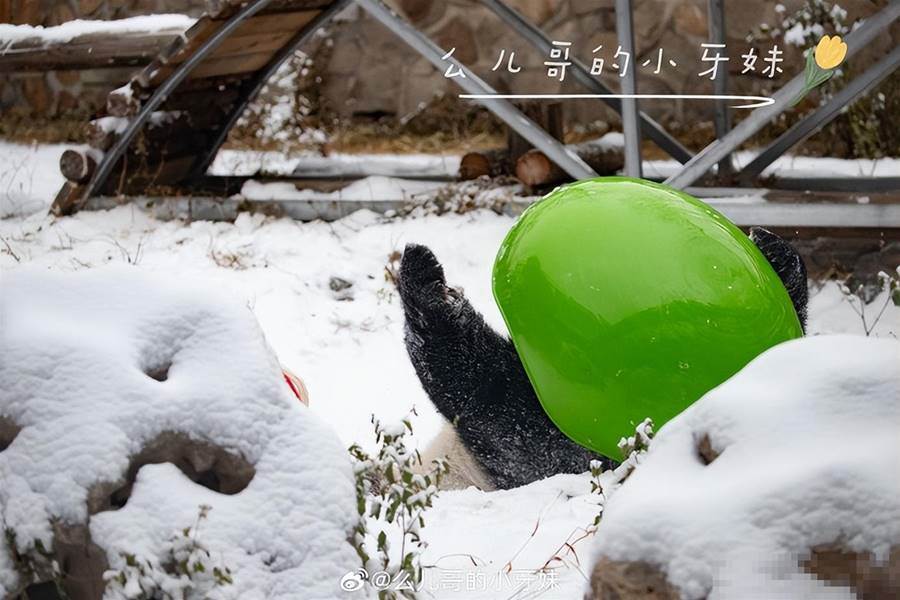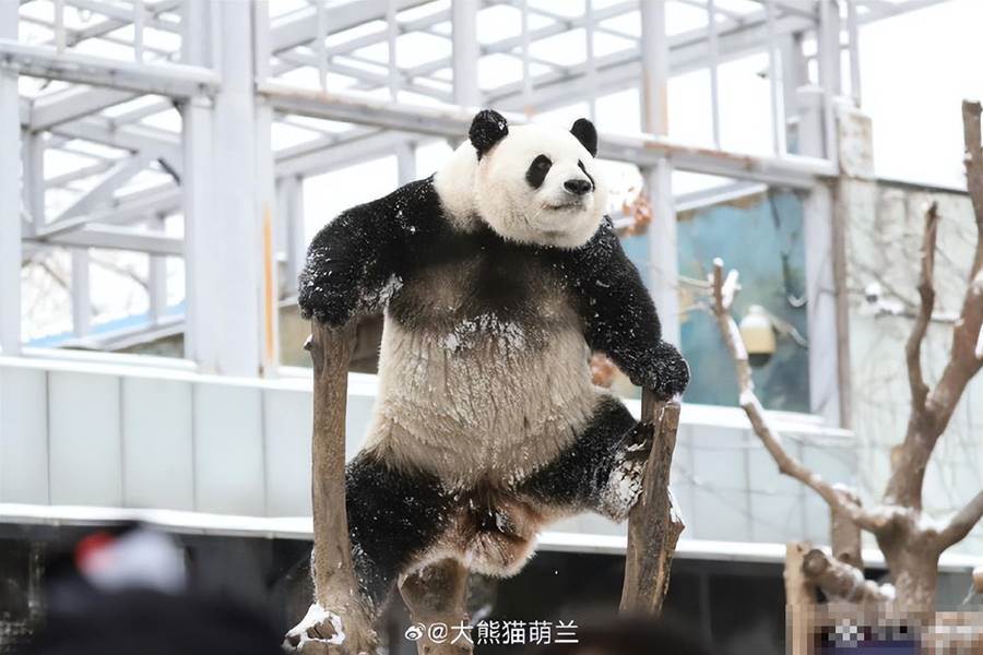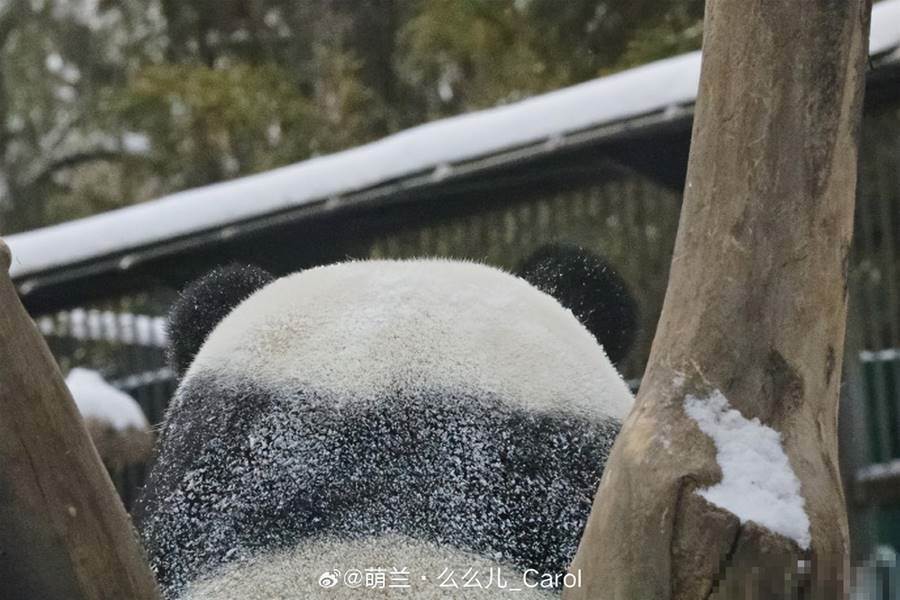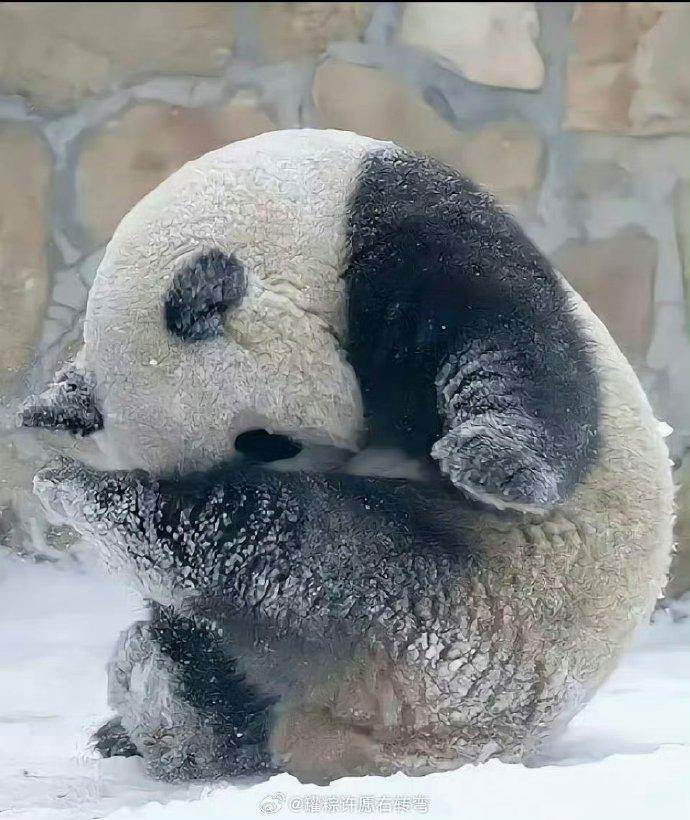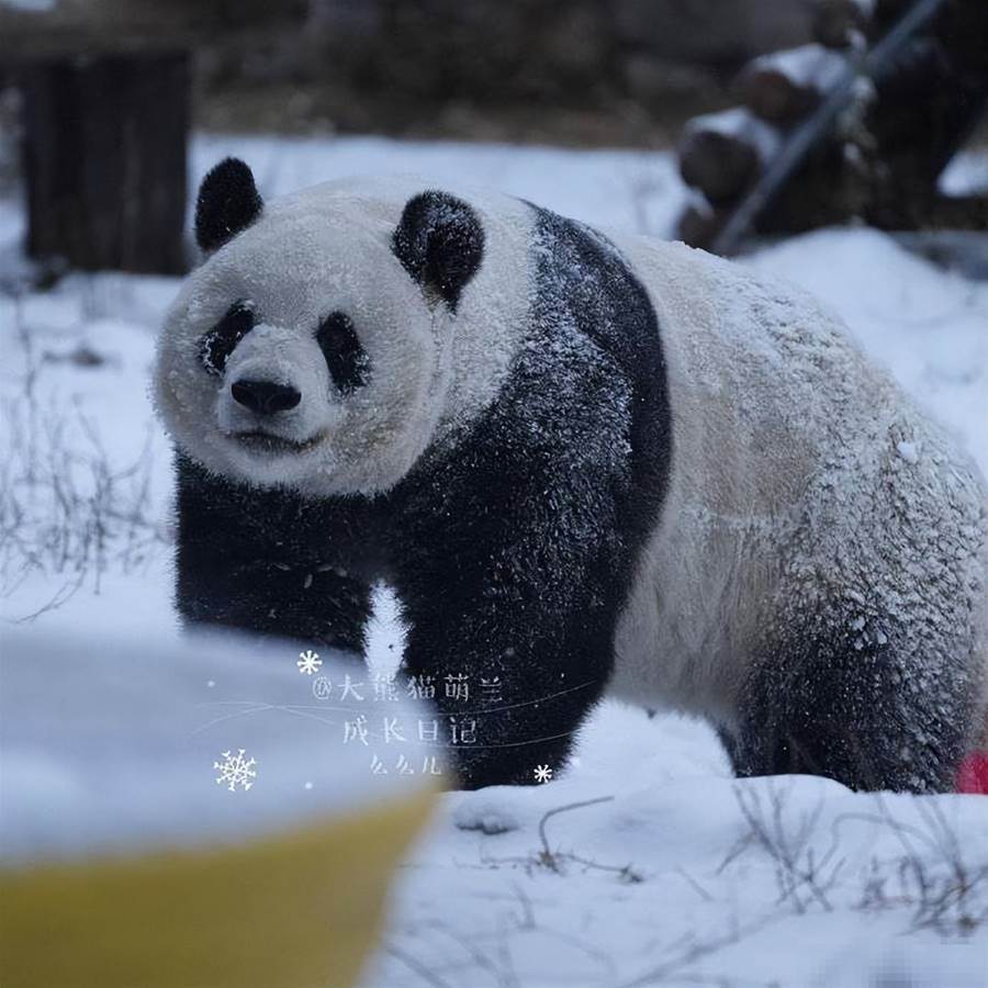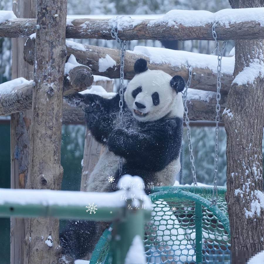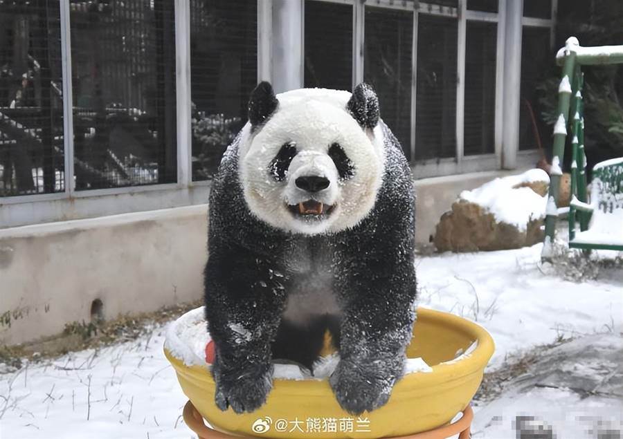 大貓熊萌蘭盡情撒歡,渾身宛若裹滿糖霜……