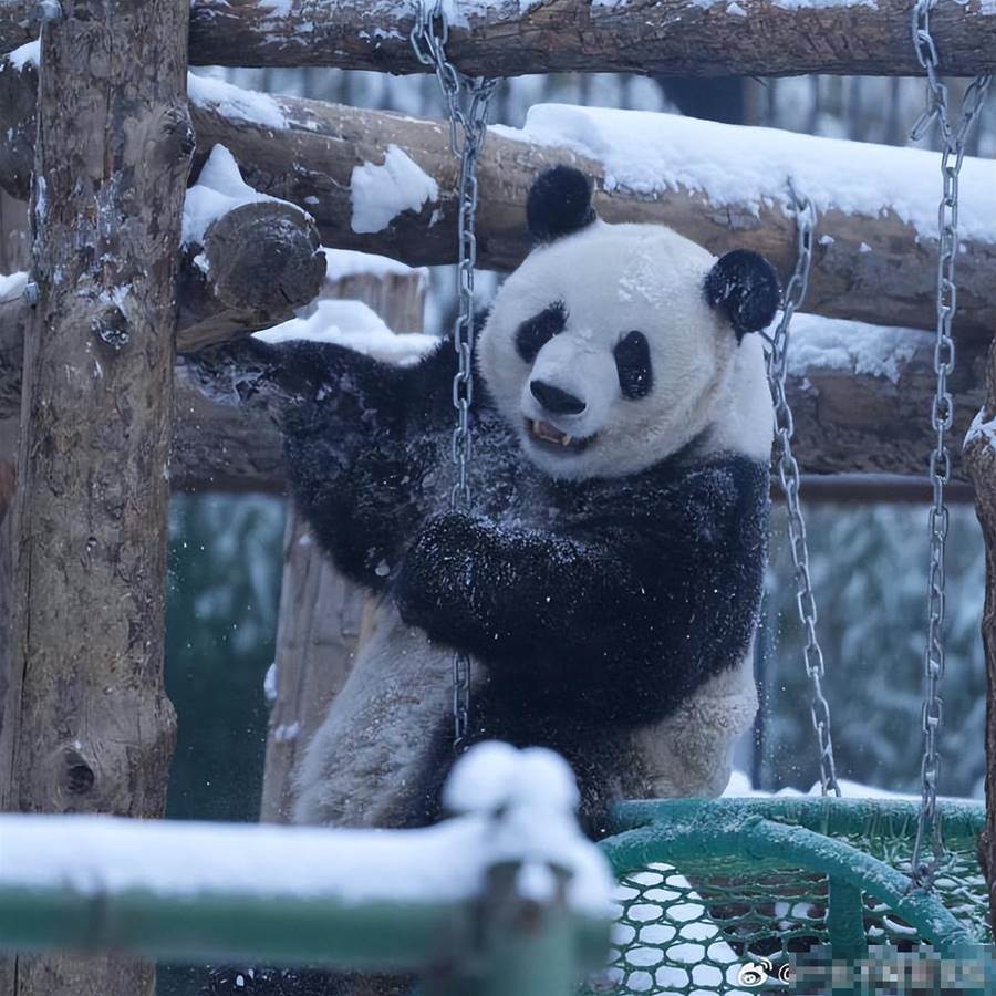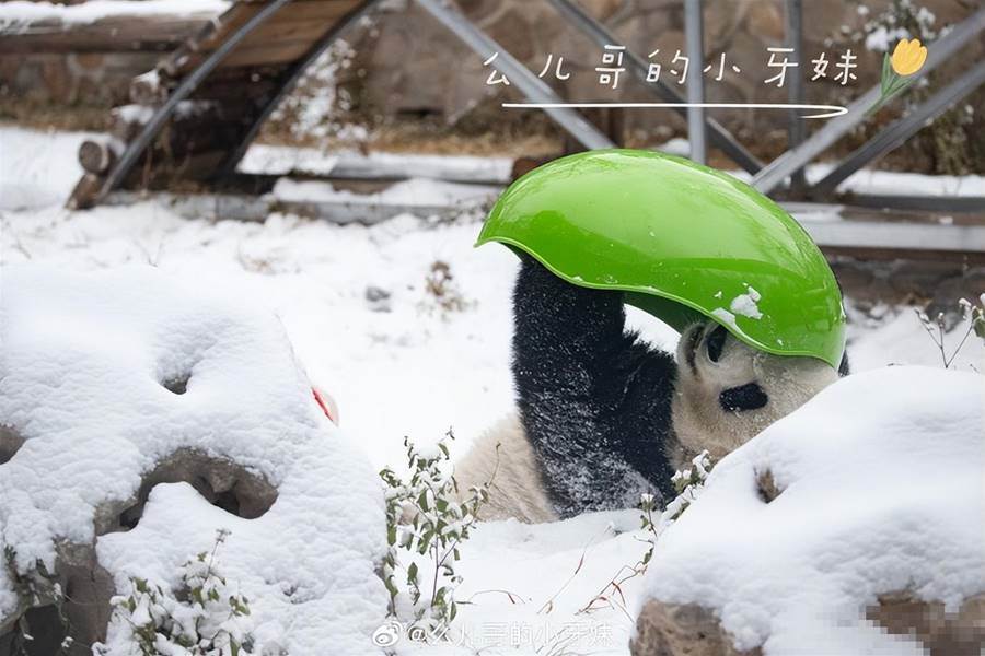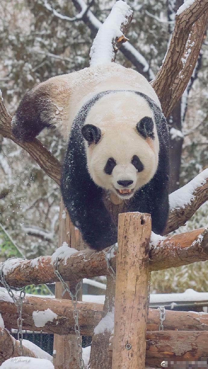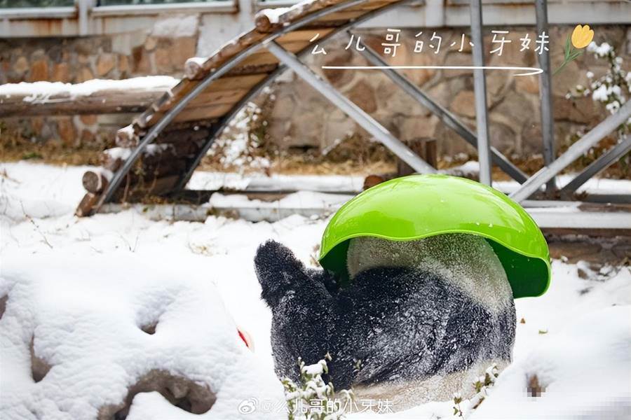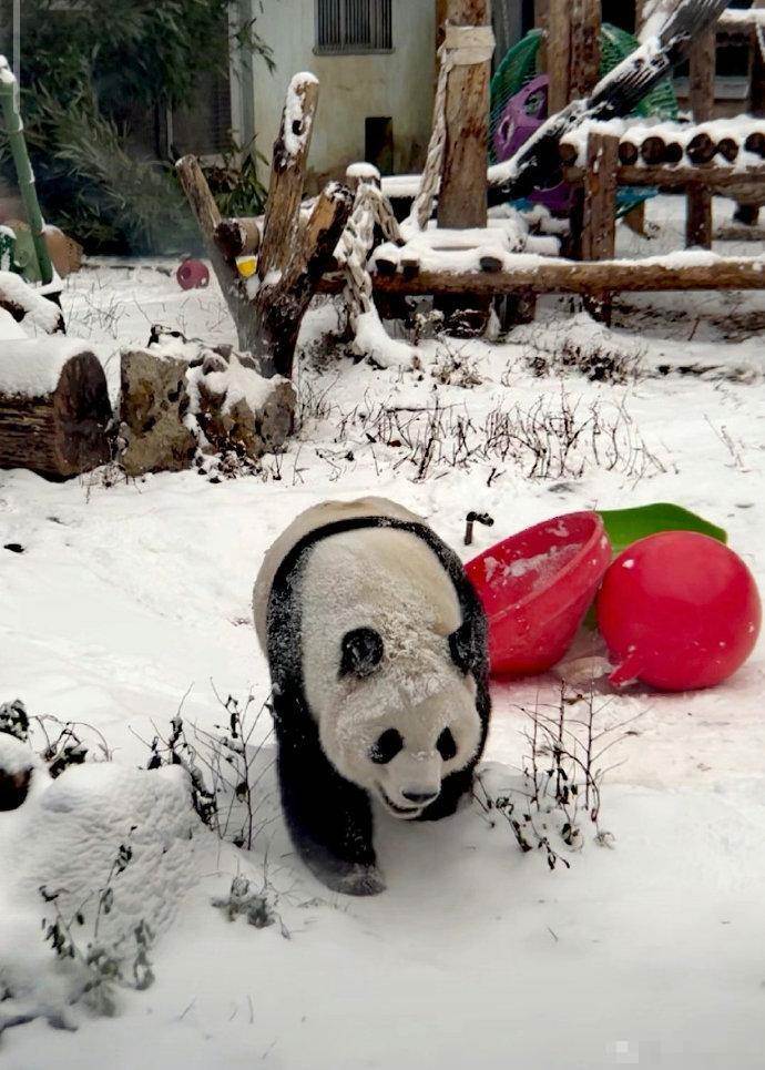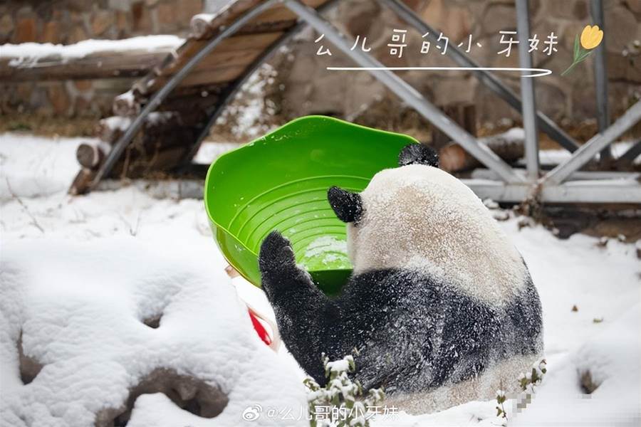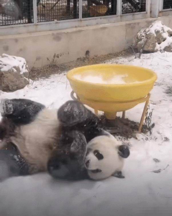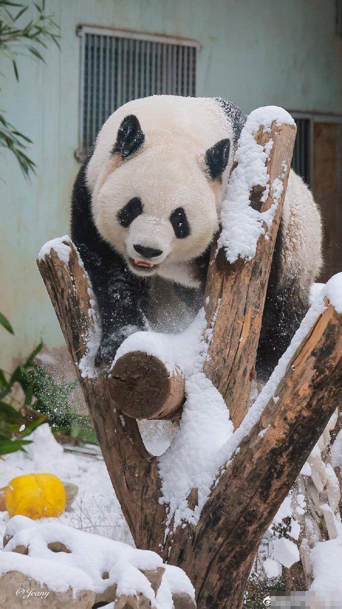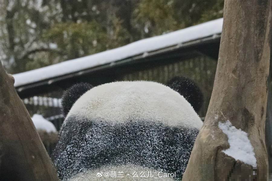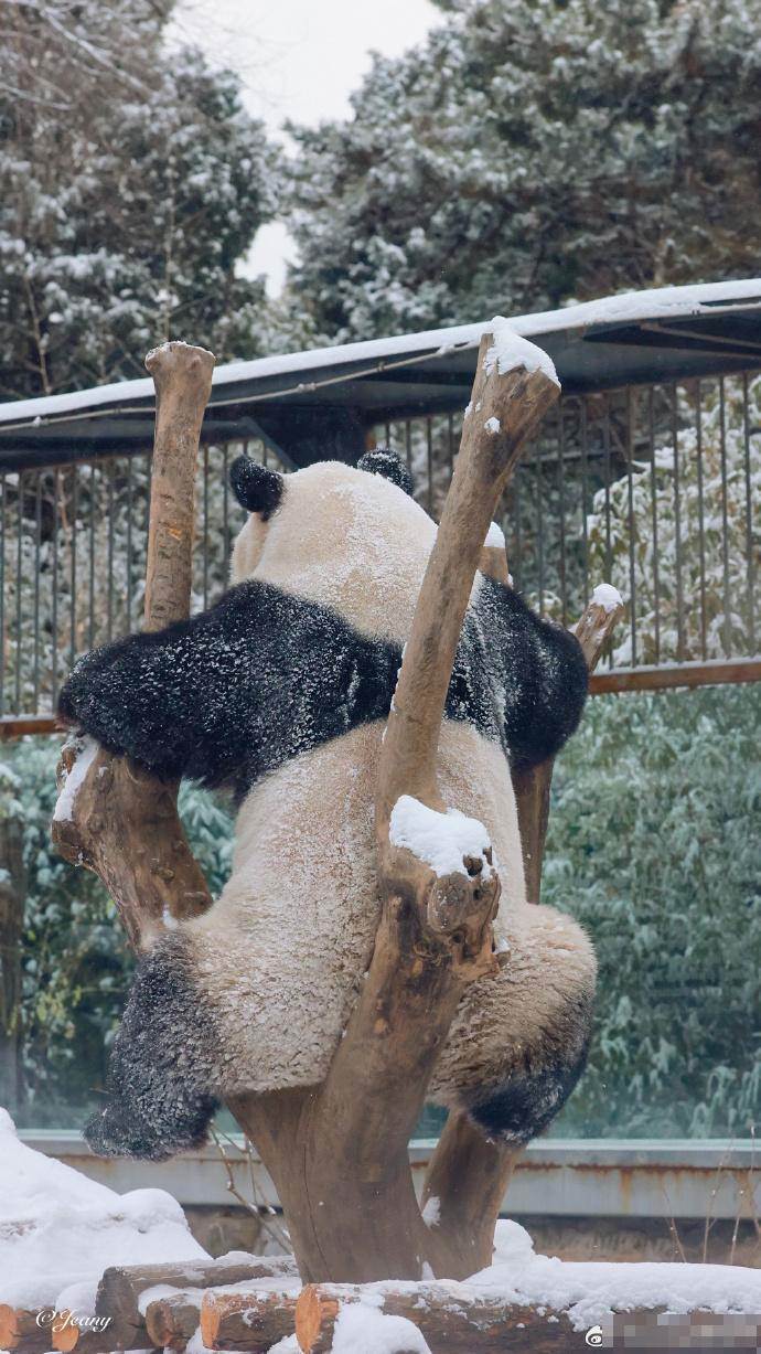 大貓熊萌蘭盡情撒歡,渾身宛若裹滿糖霜……