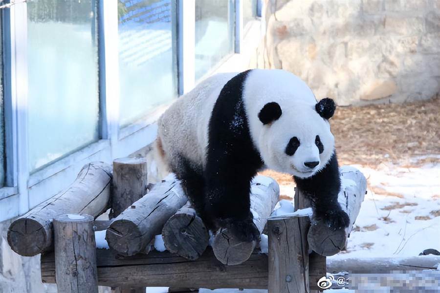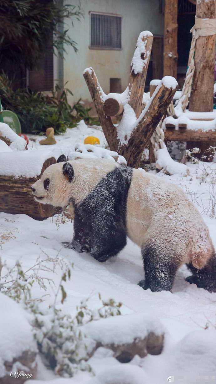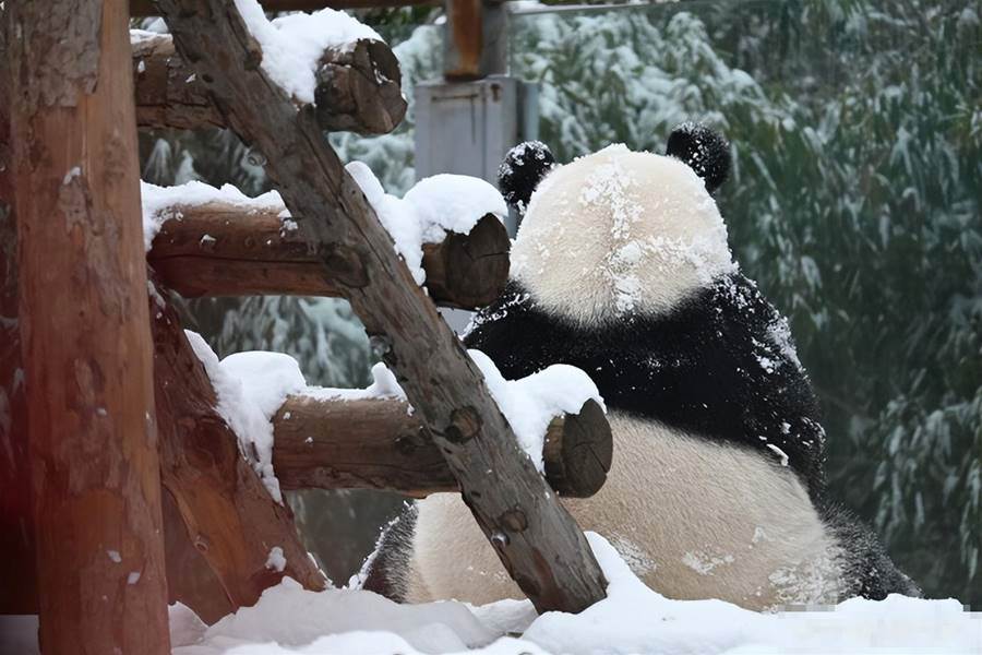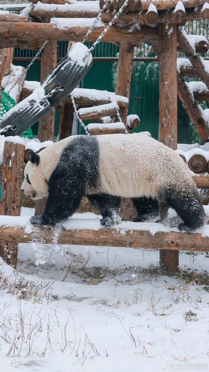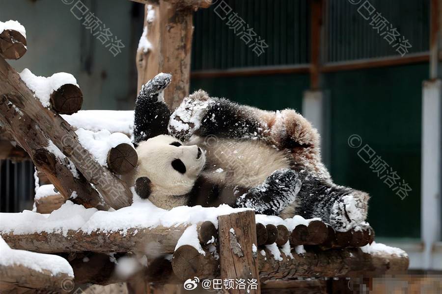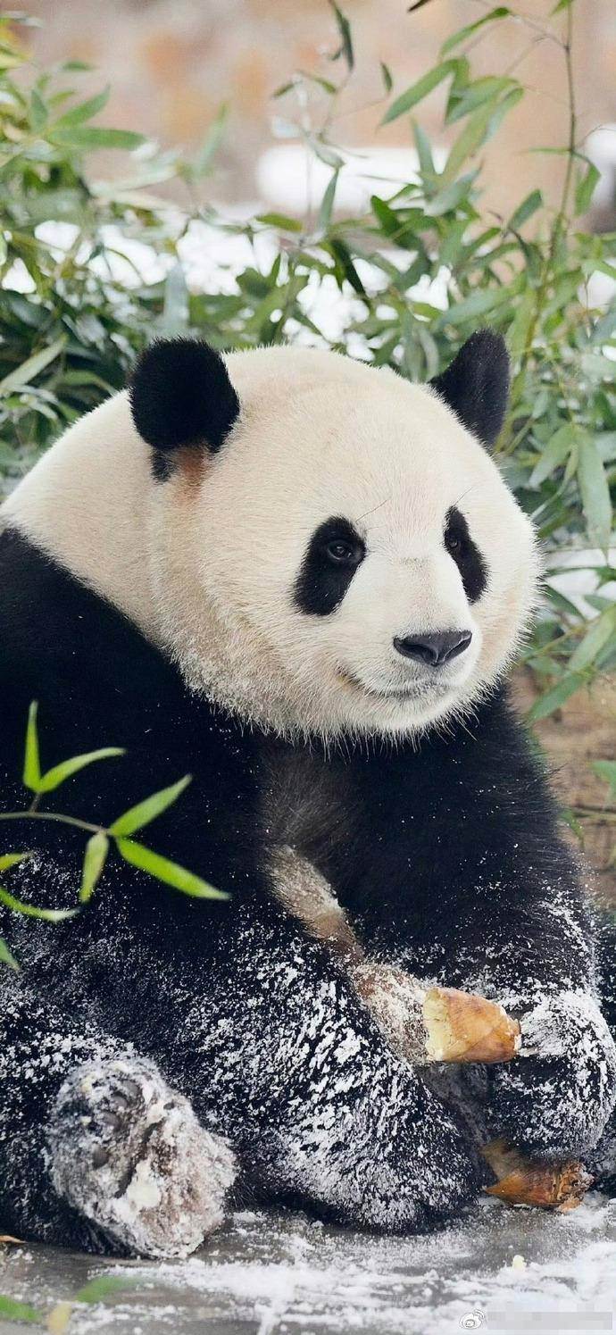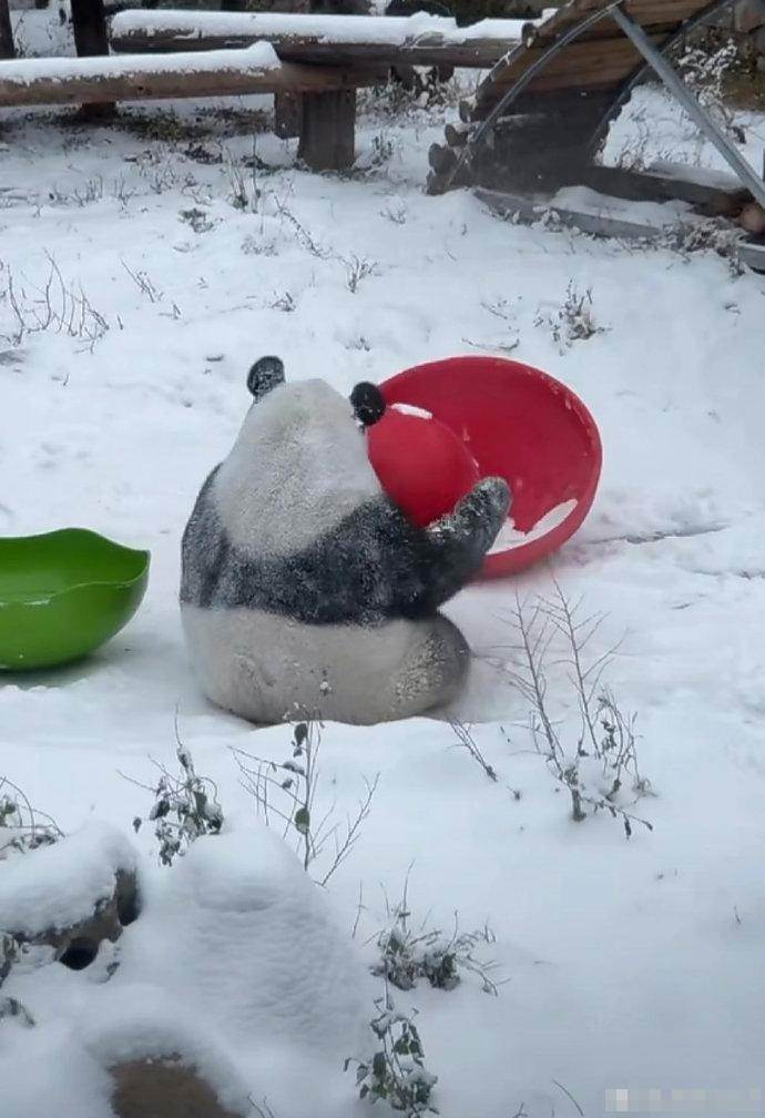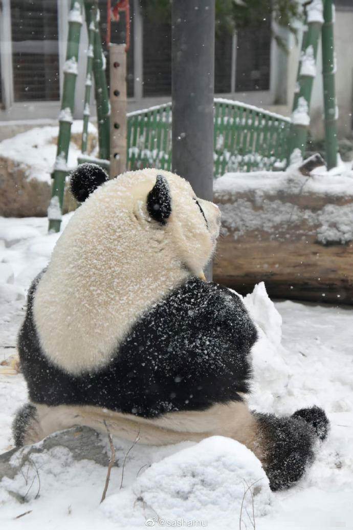 大貓熊萌蘭盡情撒歡,渾身宛若裹滿糖霜……