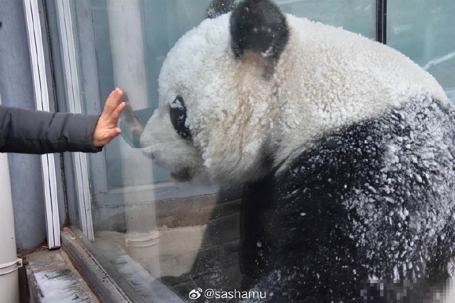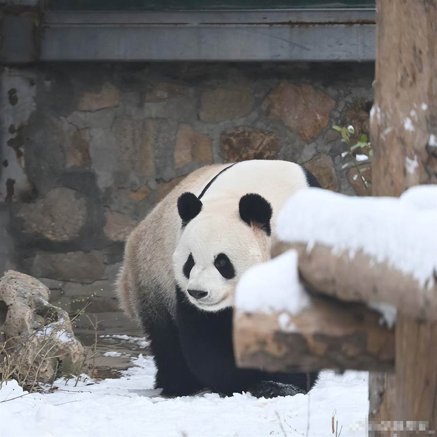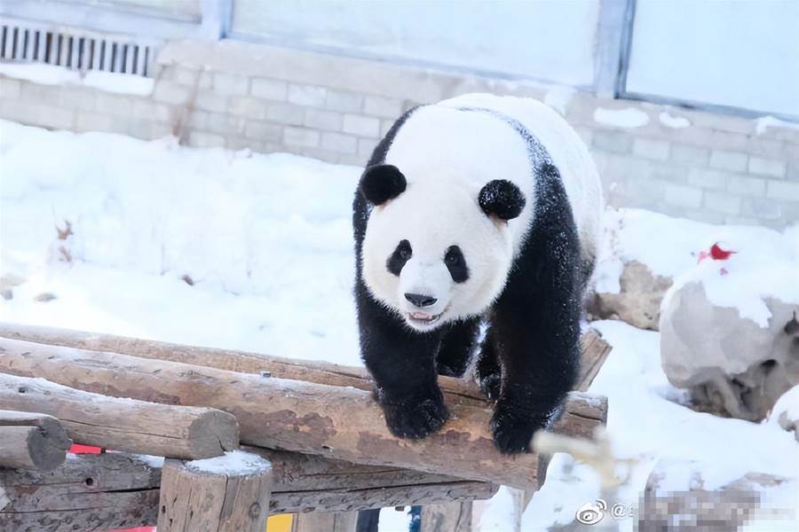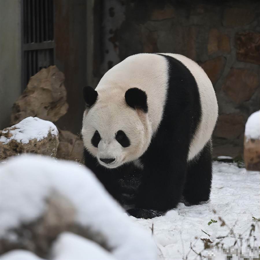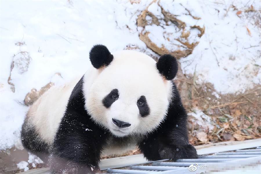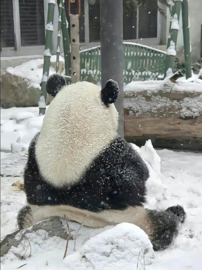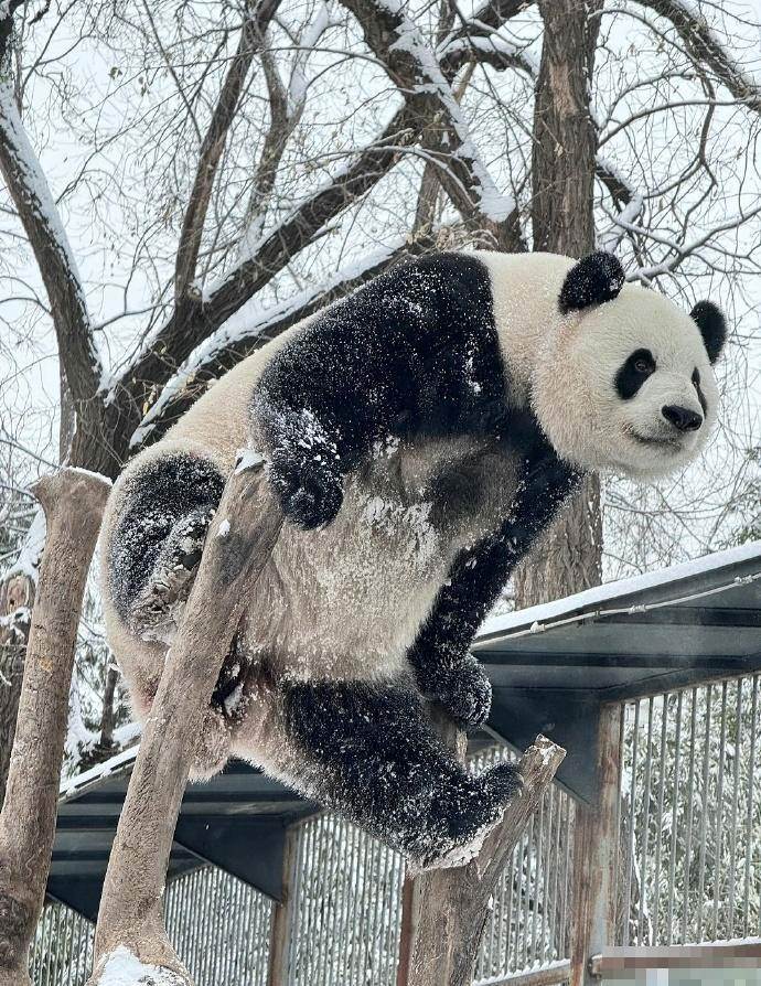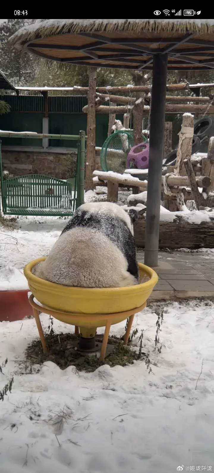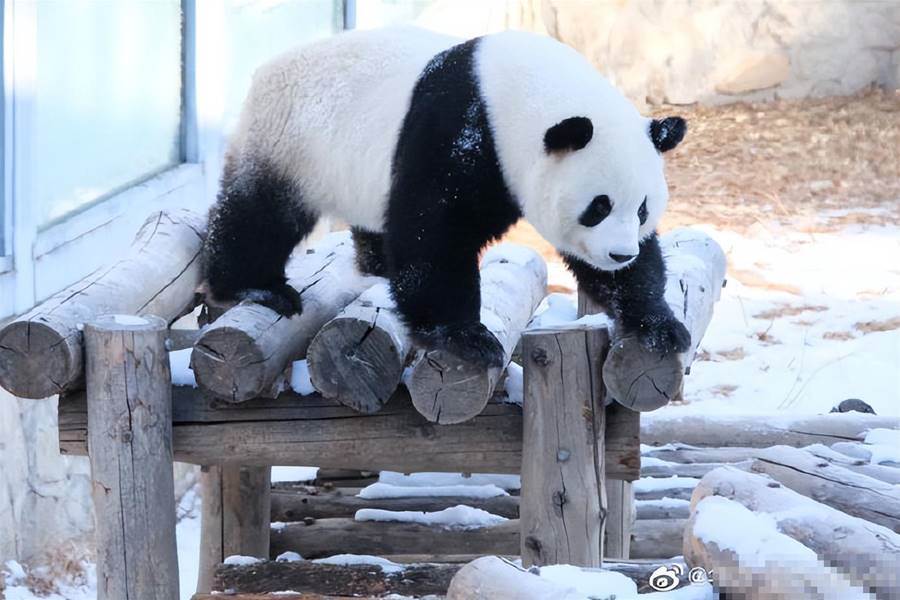 大貓熊萌蘭盡情撒歡,渾身宛若裹滿糖霜……