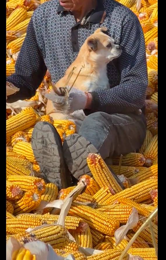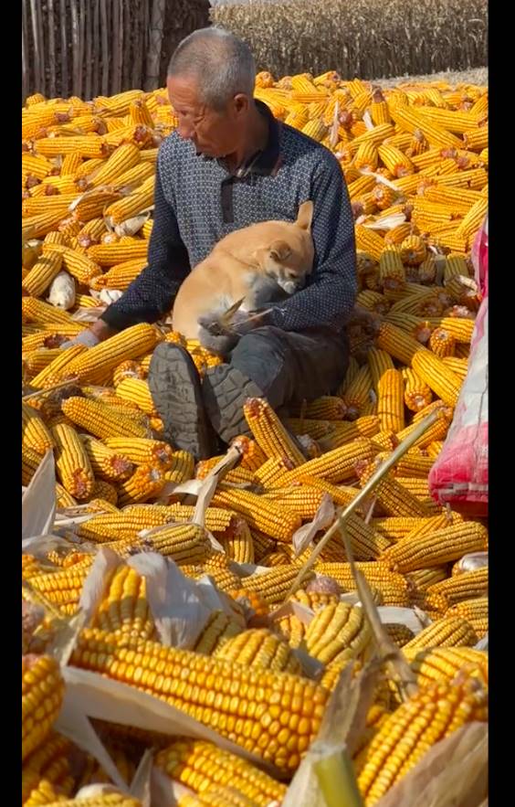 10月11日在河北,有一位網友的爺爺家里養了只狗狗。最近是秋收季節,家里收了好多的玉米,網友也回了家幫幫忙呢!而令網友驚奇的是,爺爺坐在玉米堆里剝玉米的時候,狗狗不僅不幫忙,還坐在了爺爺的懷里,把頭低著靠在爺爺的臂彎里,像個撒嬌的孩子一樣!