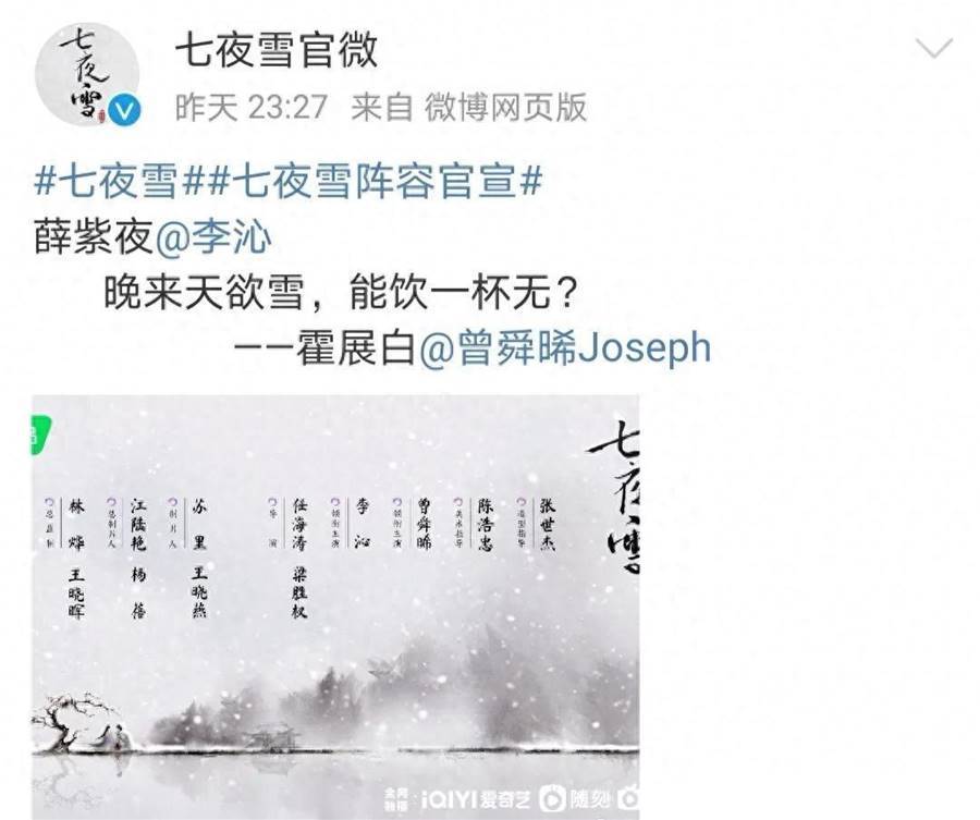 改編自滄月的同名古裝武俠劇《七夜雪》正式官宣,李沁搭檔曾舜晞主演,讓人甚是期待!