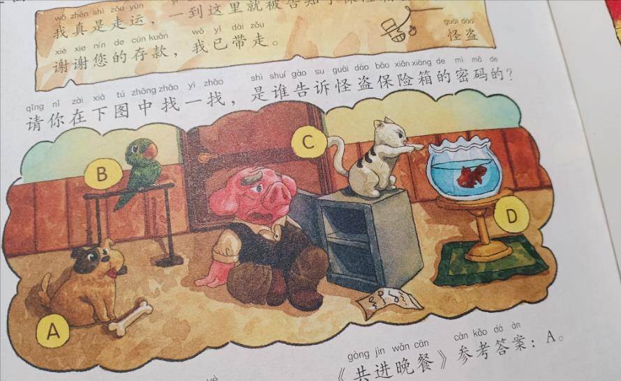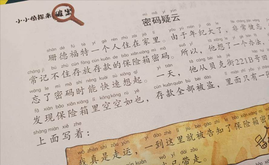 既可以滿足孩子的破案的愿望,又可以結合圖片思考,考察孩子對細節的觀察,培養思考問題的邏輯能力。