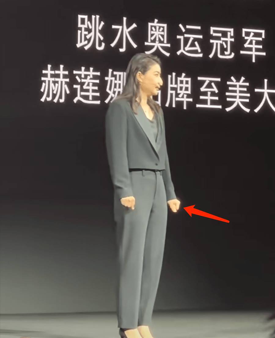 剛走上台的時候,郭晶晶雙手還握成了拳頭,像第一次上舞台表演的孩子。當然這也顯得郭晶晶很有親和力,毫無豪門闊太的架子,其實她緊張在所難免,畢竟平日里很少面對鏡頭。