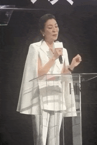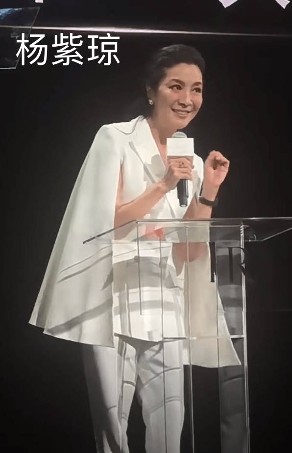 同樣出席活動的還有奧斯卡影后楊紫瓊。她身穿白色西裝斗篷,散發女王氣場。畢竟是演員出身,所以楊紫瓊表現得更為淡定自然一些。