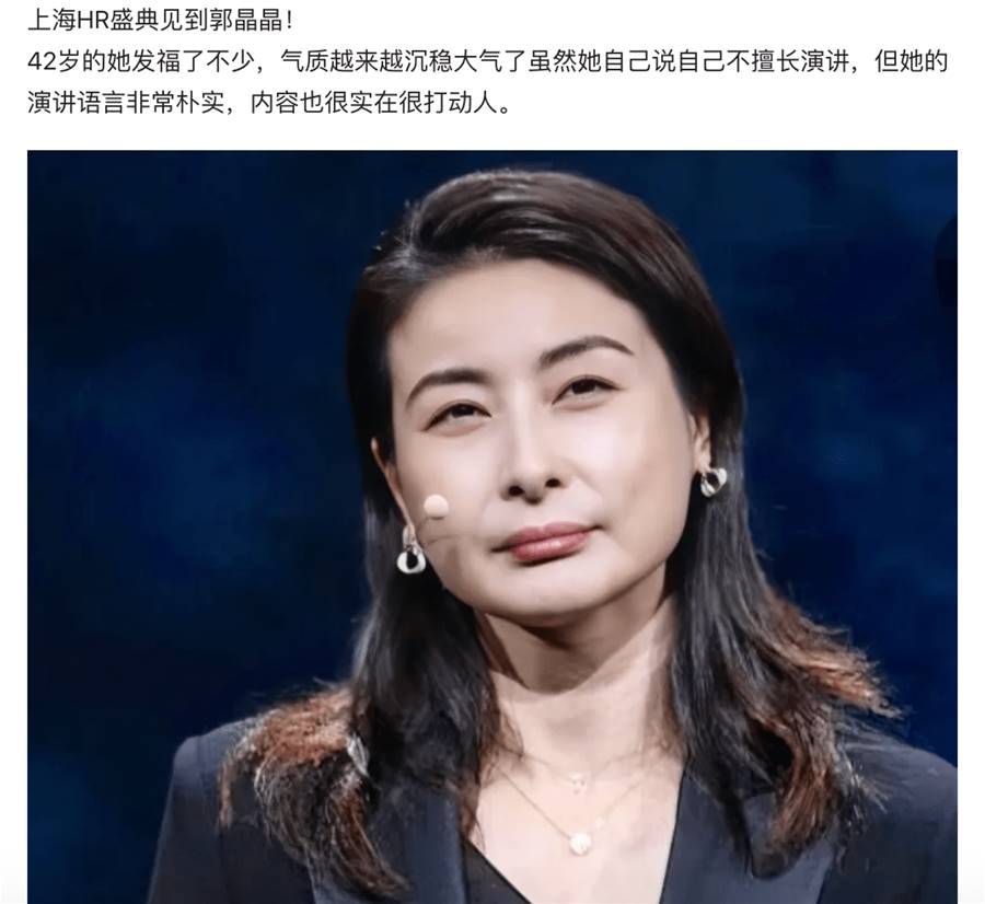 但是從大屏幕上也能看出,41歲的郭晶晶確實肉眼可見地衰老了,眼睛周圍皺紋搶鏡,肌膚似乎也有些松弛,不過也因此看起來非常和藹可親。
