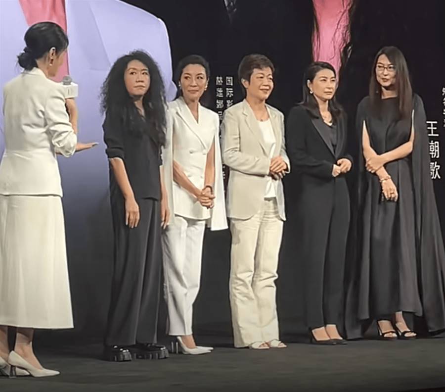 導演王潮歌也在現場,一頭波浪卷髮型野性十足。在台上的都是各界的女精英。