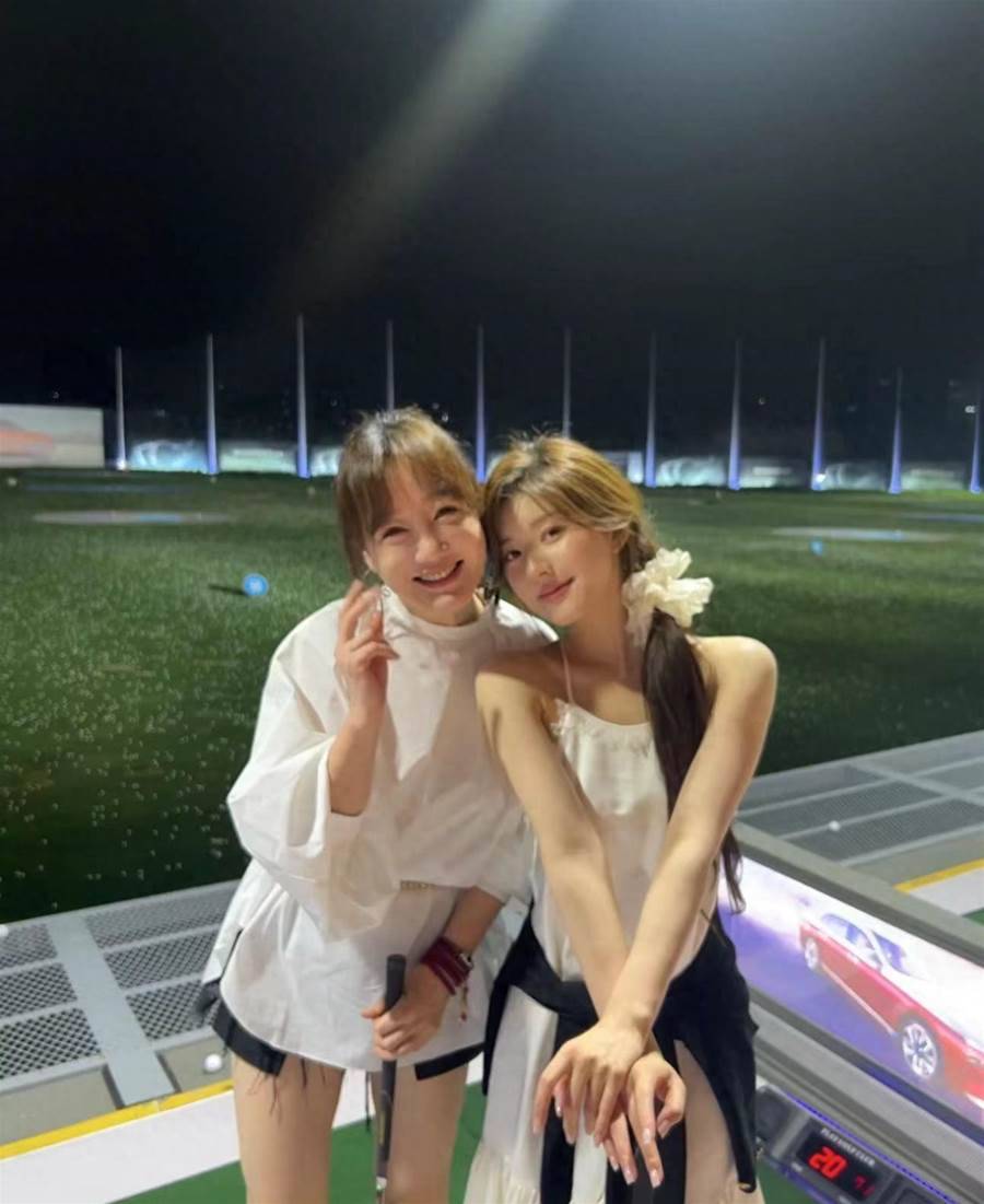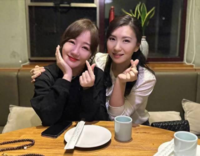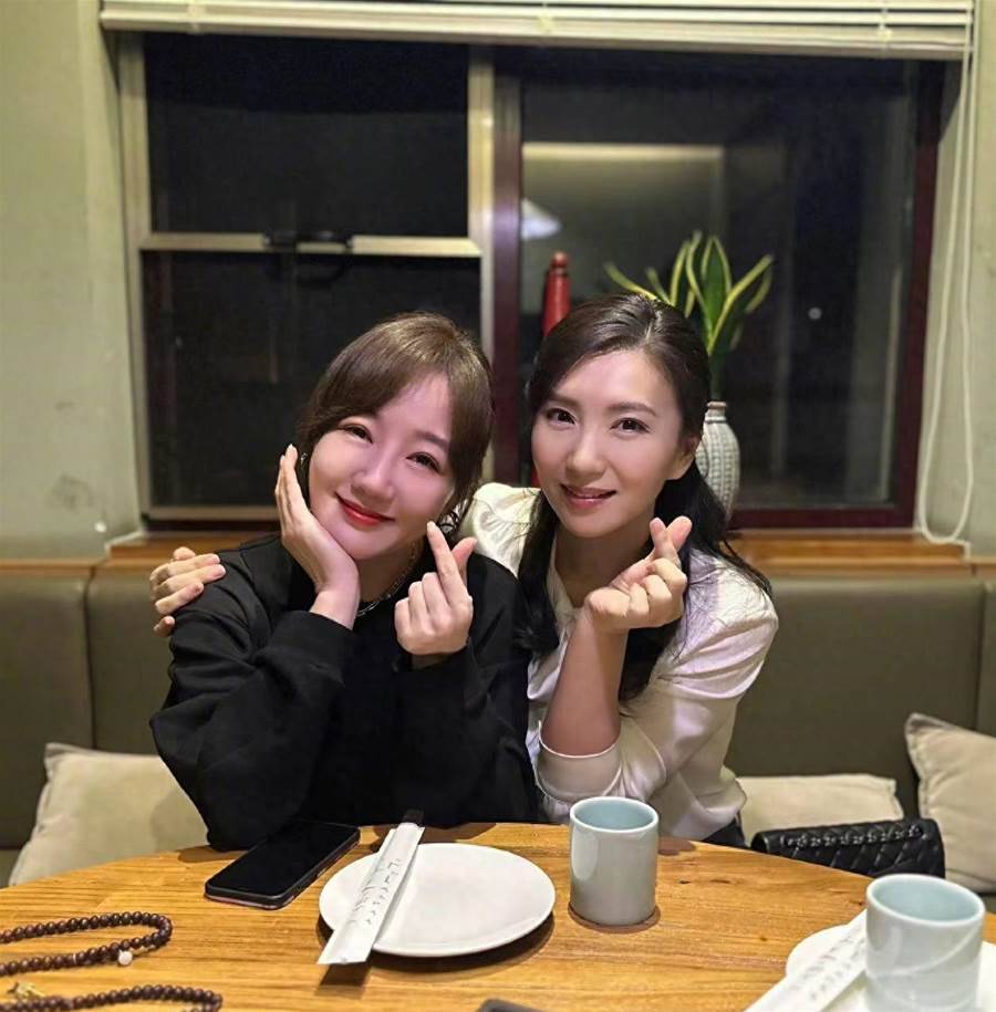 照片中,陳好一邊摟著薛佳凝,一邊對著鏡頭比心。而薛佳凝用一只手比心的同時,另一只手則托著自己的下巴,和當年的「哈妹」一樣,看起來十分俏皮。