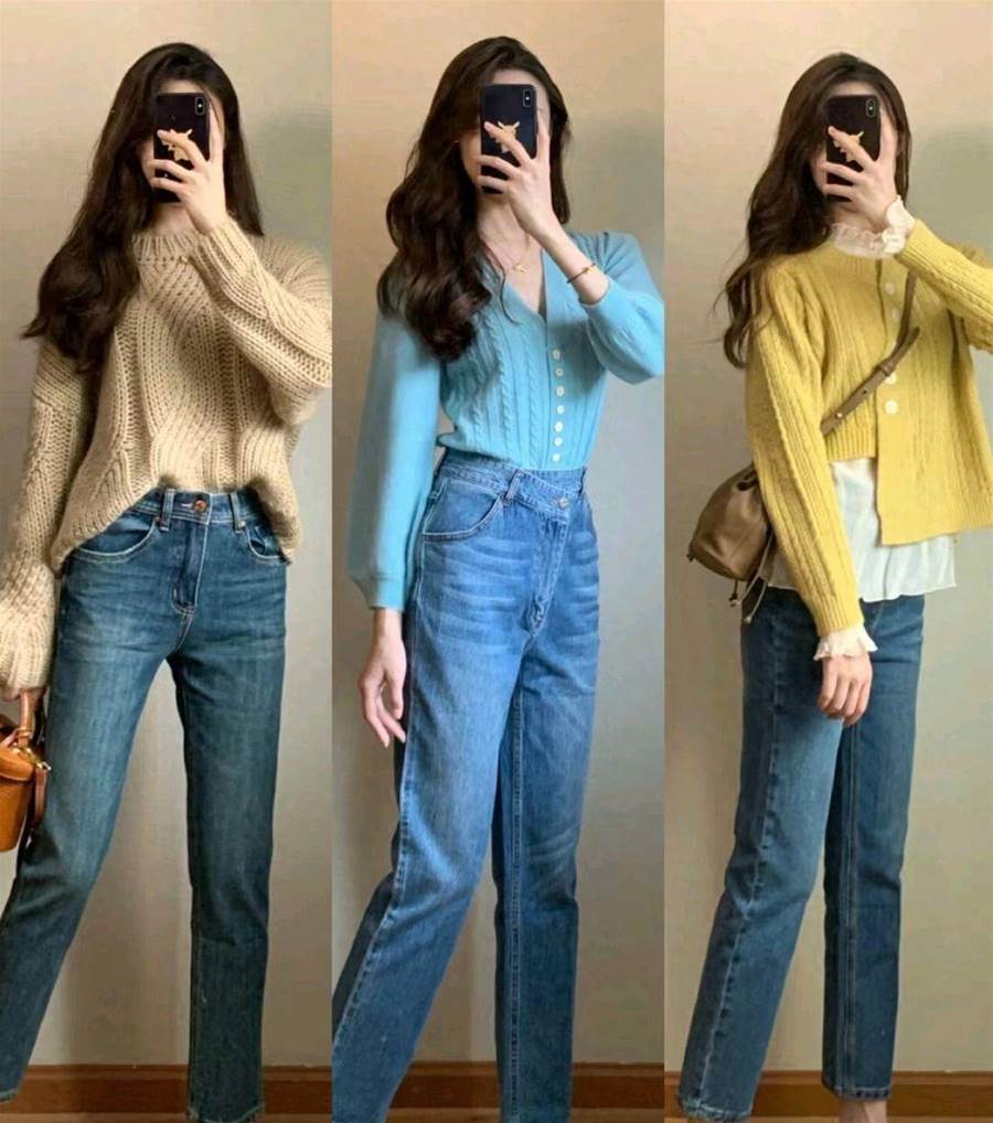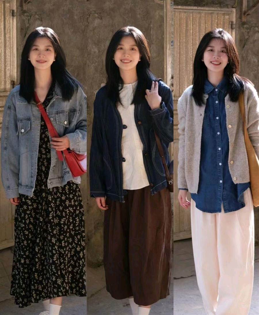 比如藏藍色的牛仔襯衫,顯白又帥氣,疊穿灰色的針織開衫,增加了一些沉穩優雅的味道,搭配白色的闊腿褲,整套的搭配看上去有種慵懶隨性的格調,又不失優雅的書卷氣,簡單干凈又很耐看。
