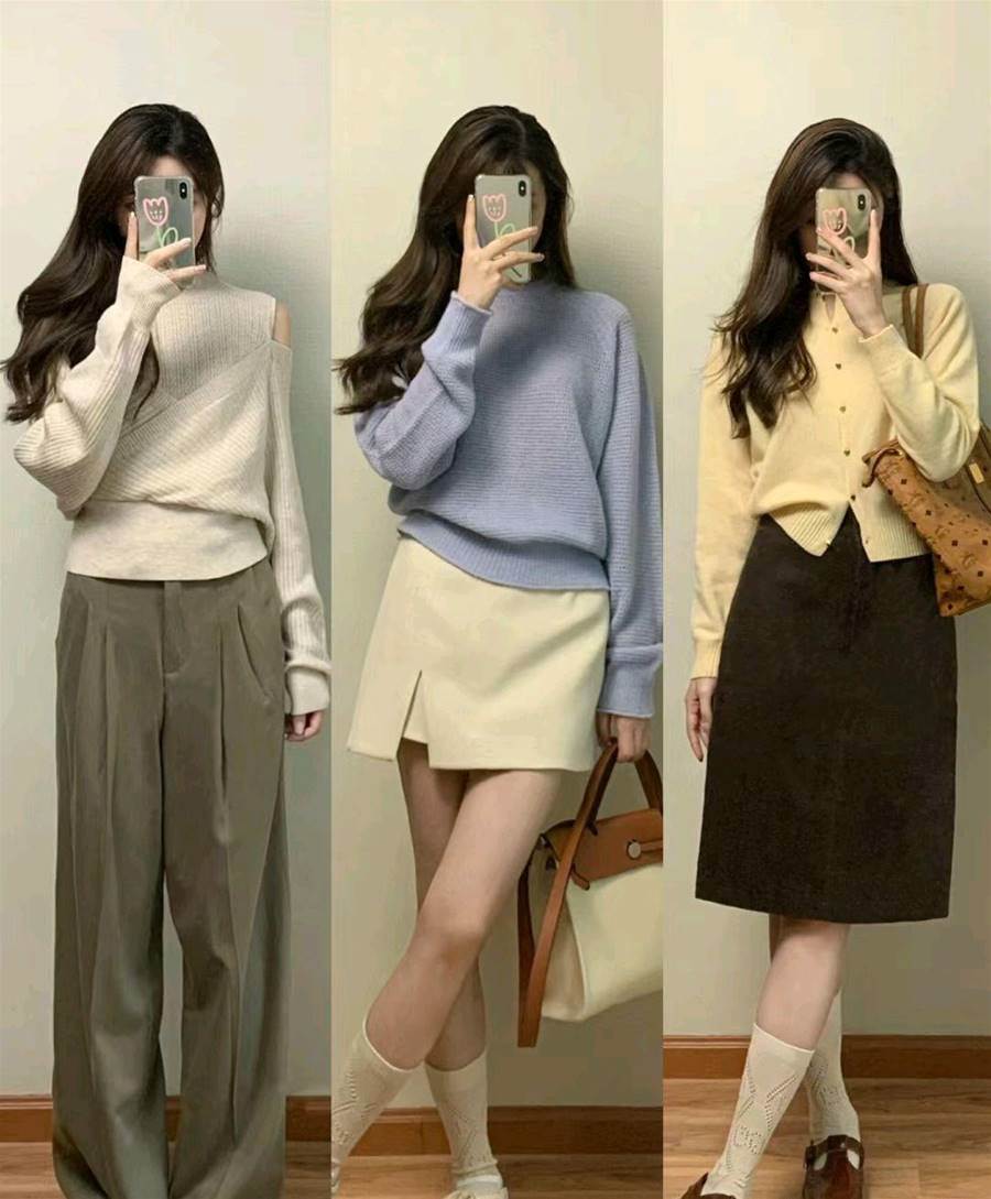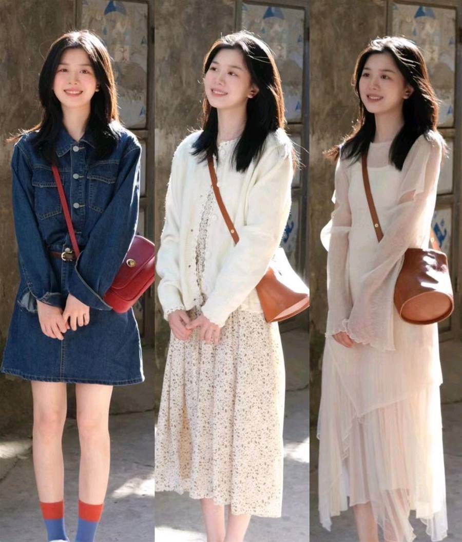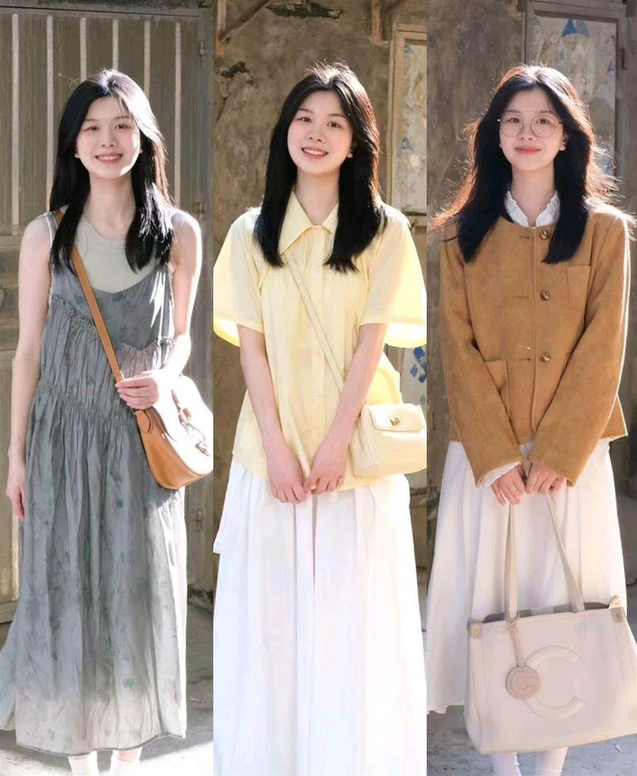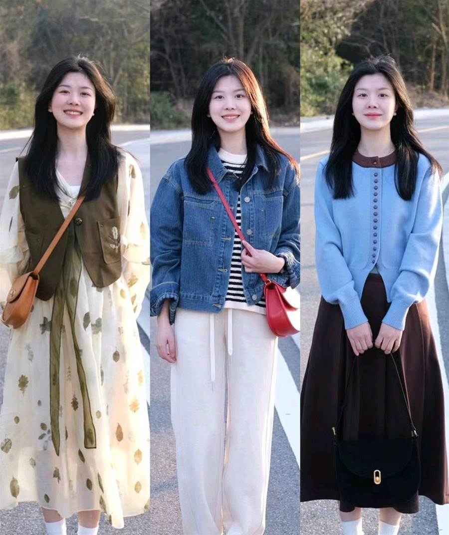 比如,一件咖色的連衣裙,簡單而溫柔,可以嘗試在外面疊穿一件水藍色的針織開衫,撞色的疊穿讓層次感更清晰,而且又有一種清純感,很學院風的樣子。