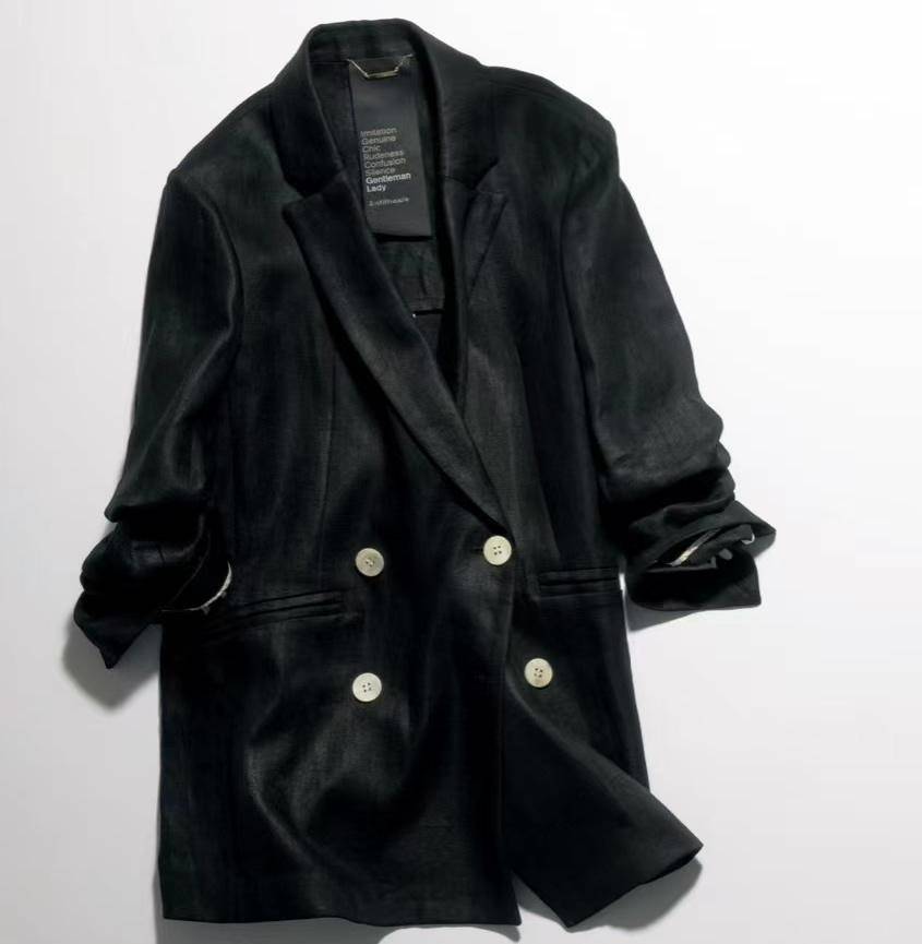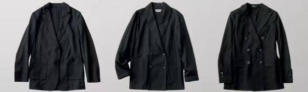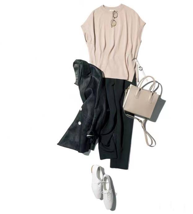 ① 輕薄黑西裝夏天通勤單品,輕薄西裝堪稱必備。黑色、白色、米色、淡粉色、淺藍色均可,中袖或八分袖長,面料細膩有光澤,設計簡單大氣。
