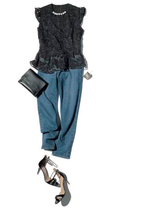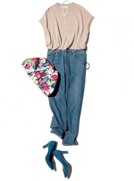 手法一:加牛仔褲上衣成熟有女人味,需要經典牛仔褲的休閑來化解。點綴以精致鞋包,比較常規的精致混搭法。