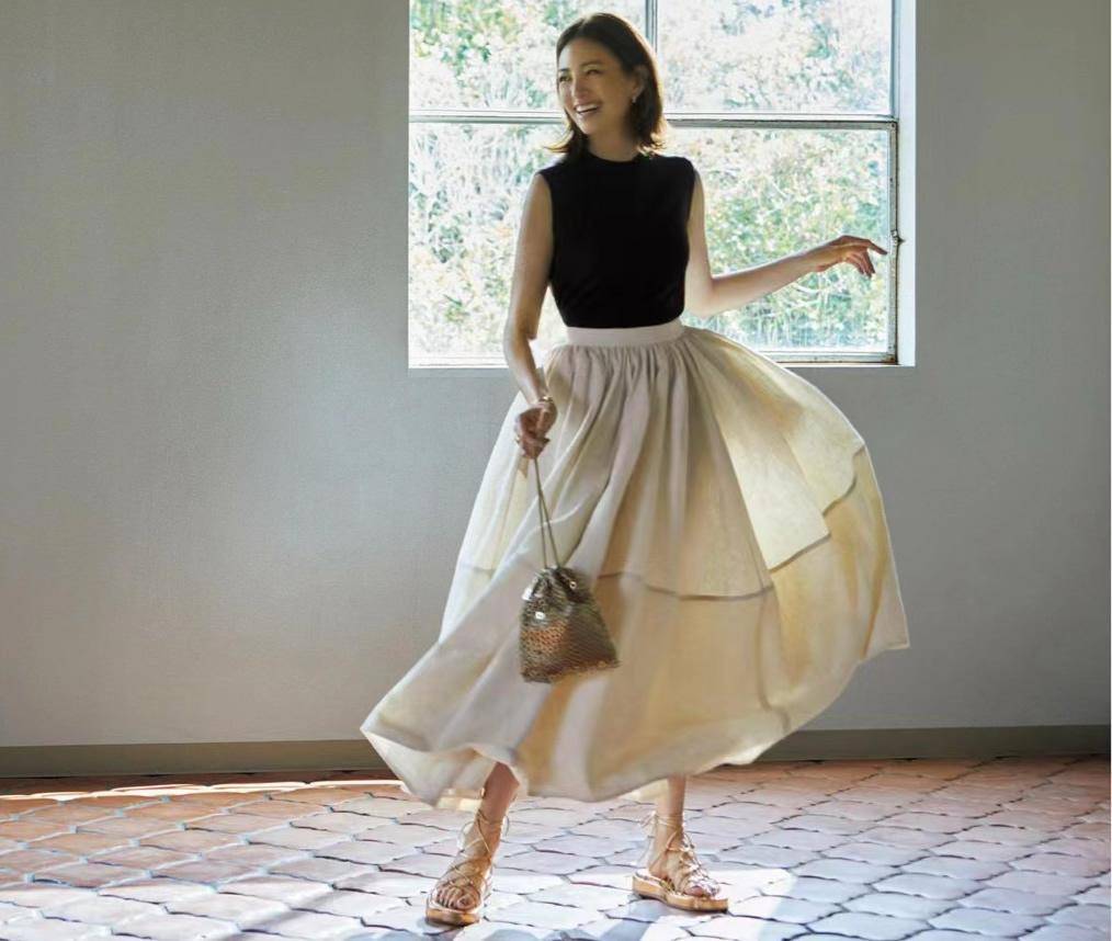 ⑤ 鮮艷色傘裙浪漫夏季的輕舞飛揚,一條鮮艷色傘裙足夠了。面料輕薄,色調艷澤,裙型恣意,隨便配一件T恤,即刻撼動時髦。