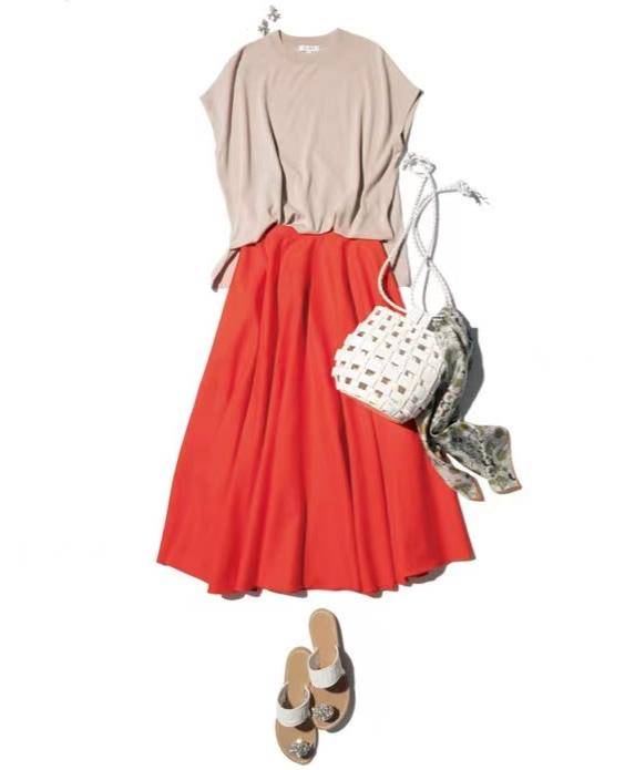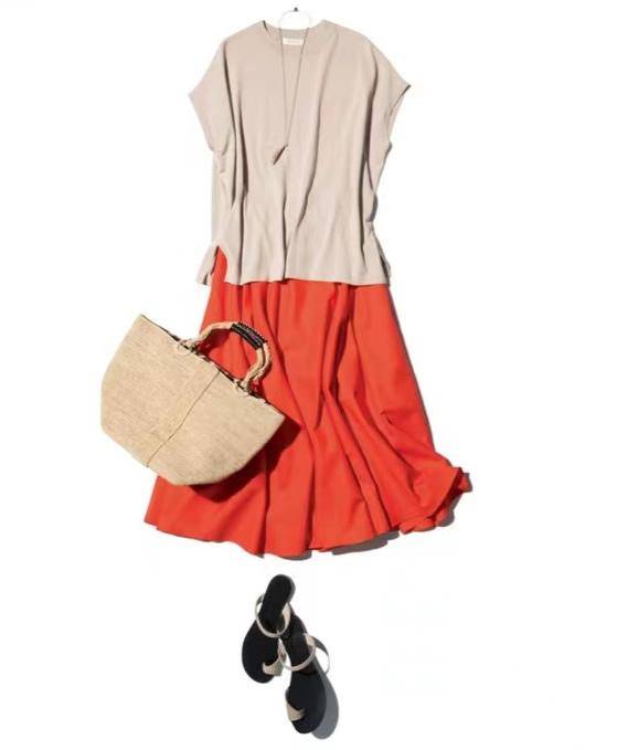 比如,橙紅色傘裙,偏暖,純度略節制,分寸正好。