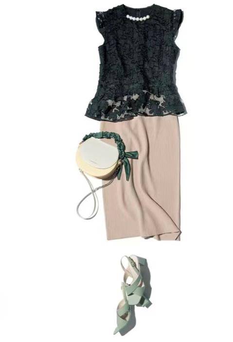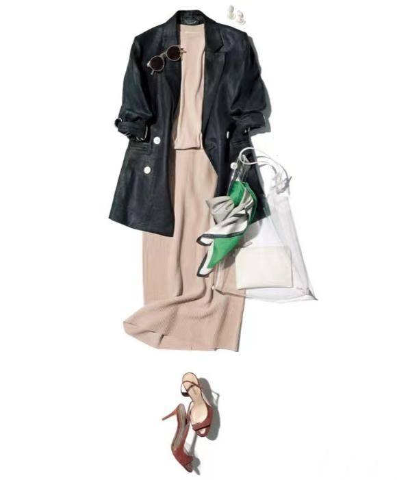 加條絲巾,透明包包、高跟涼鞋點綴,棕綠配如何?是不是眼前一亮?