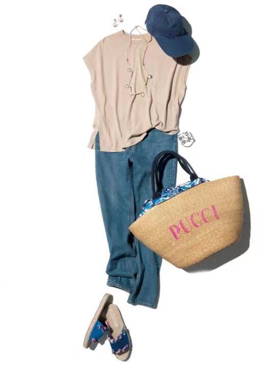 風格一:休閑優雅一白一藍,加入米色鞋包,恰好形成優雅調和。包包小巧精致,為休閑風平添幾份雅興與講究。松弛有度,分寸拿捏得剛好。