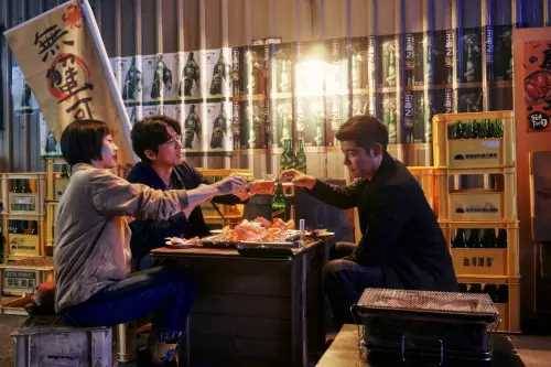 ▲簡嫚書(左起)、傅孟柏、王柏傑在《美食無間》的關係亦敵亦友。(圖/發起日影視提供)《美食無間》是融合「美食」與「警匪動作」的新品種台劇,嚴選台灣21家知名餐廳或小吃店家、美食品項超過35種,從警局搭檔傅孟柏、簡嫚書追捕殺手王柏傑的過程中,發展出男男配、男女配3對錯綜復雜的感情線。