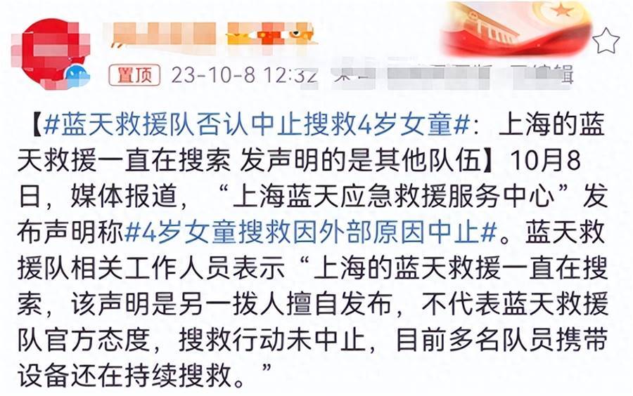 就在大家為任務中止感到惋惜的時候。藍天救援的相關工作人員又表示,救援工作一直都在進行,并沒有停止,聲明是另一撥人擅自發布的,不代表官方救援隊的態度。不知道什麼原因導致了這種情況的發生,有可能是內部產生了分歧,有兩撥人在各自運作。