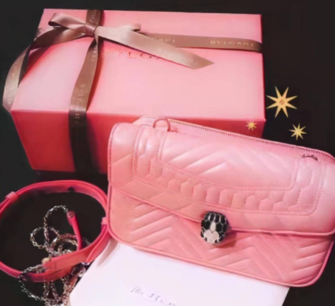 而且同款的包包還有好幾個,她自己曬出來過一個粉白漸變色的,還被路人拍到過一個玫紅色的。