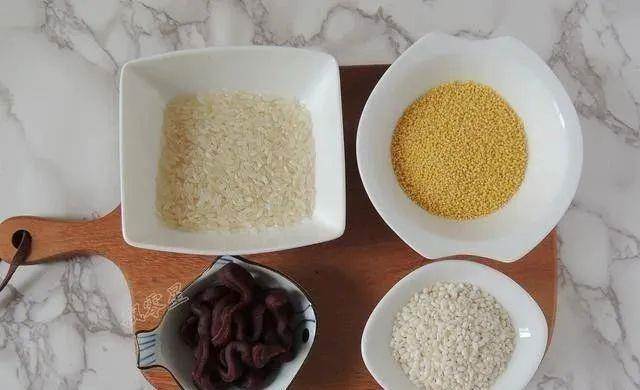 【食材】:大米 50g,糯米 50g,小米 50g,紅豆沙 50g。