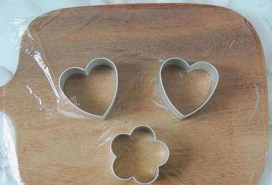 8.砧板上鋪一層保鮮膜,模具和保鮮膜上都刷一層薄薄的熟油。熟油就是加熱以后再晾涼的食用油。刷油的目的是為了防粘,更好脫模。