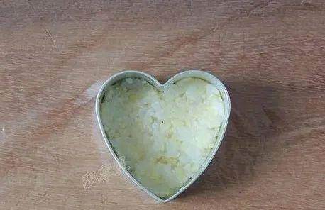 12.做好之后用勺子背面壓住米飯,將模具取出來,脫模就完成啦。