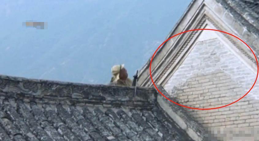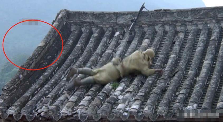 可下一秒鬼子從房頂上滾落下來時,左邊的房子竟然消失不見了,這個穿幫鏡頭簡直不要太明顯。