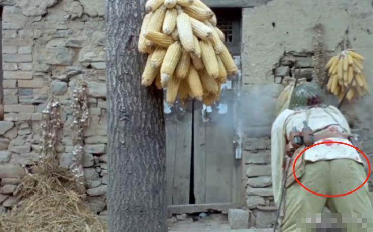 但當鏡頭一轉女子拿起機槍瘋狂掃射時,那個已經涼透的日本鬼子,他屁股位置竟然憑空出現了一個圓形的補丁。