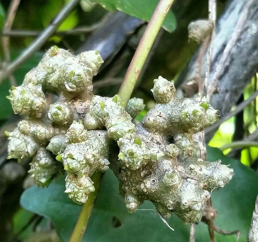 在我們當地老人家就會稱它為壯腰菜,具體是真的我不太知道,但是這個菜吃起來真的是非常的順滑,大家再看一下它的一個嫩芽,這邊是綠色的,而且到它中部這邊是淡紫色,越到下面是棕褐色,而且還可以發現它,這個有點像根上的腫瘤一樣,其實并不是,它就叫珠芽,像這種珠芽也可以拿回去用來燉湯,也是相當的不錯,而且對中老年人比如說某某高的也能起到一定的幫助。