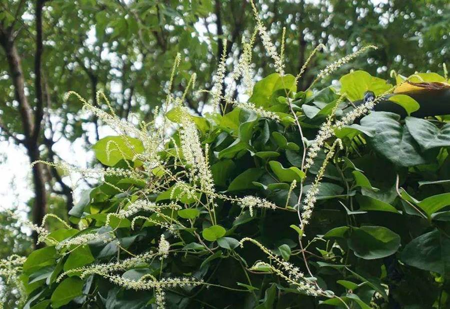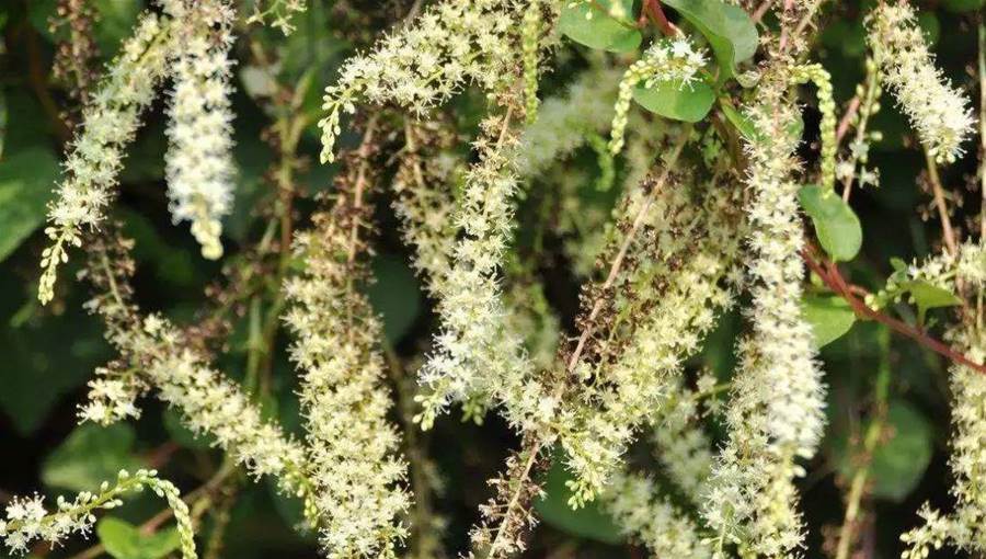 妙用三,每年六到十月份都會開出這種白色的花朵,是一簇簇的,會吸引非常多的蜜蜂來采蜜,也可以說是很好的蜜源植物。