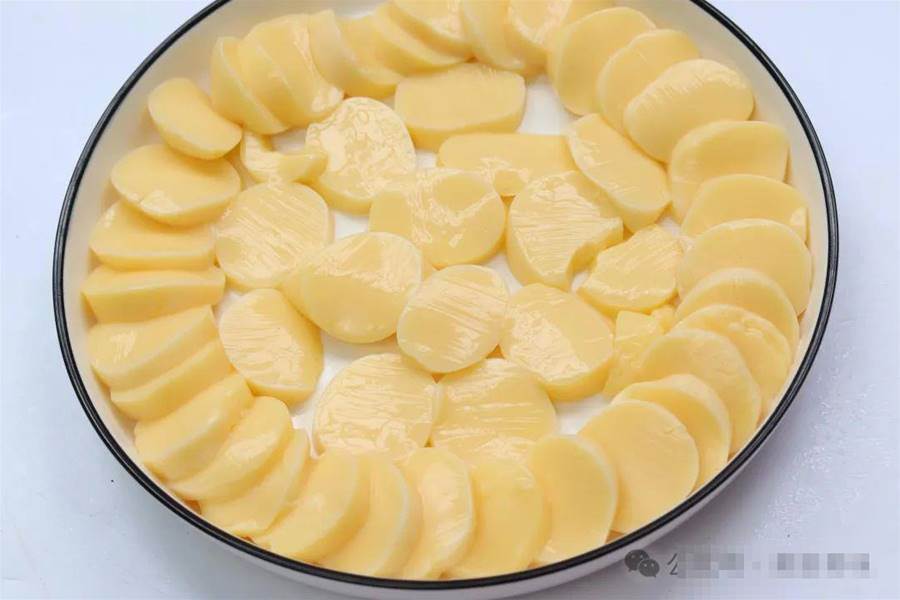 把玉子豆腐碼放到盤子的周圍,中間擺滿。