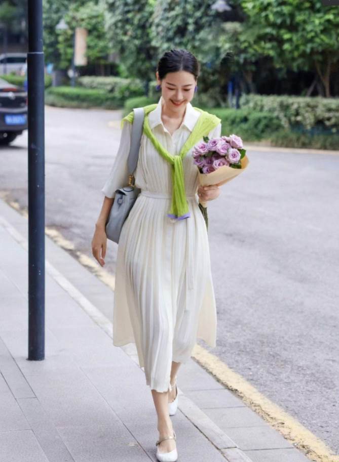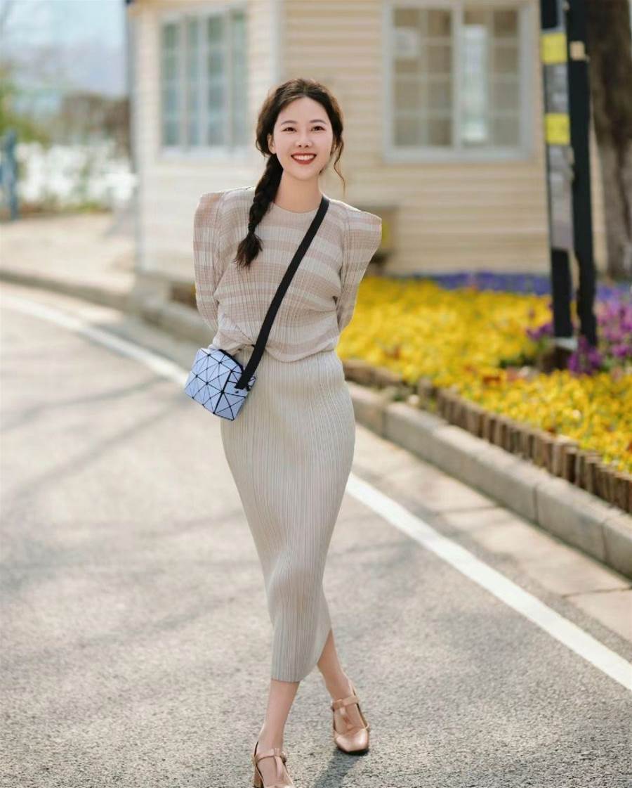 當然啦,裙裝在進行搭配的時候還是要提醒大家盡量是不要搭配平底鞋,不然的話會瞬間削弱裙裝它本身的穿搭魅力還是要優先于選擇將尖頭設計的低跟鞋或者是高跟鞋進行入選。一來是能夠保證我們的身材狀態保持一定的身高優勢,二來的話則是從氣質出發非常極具優雅和得體性。