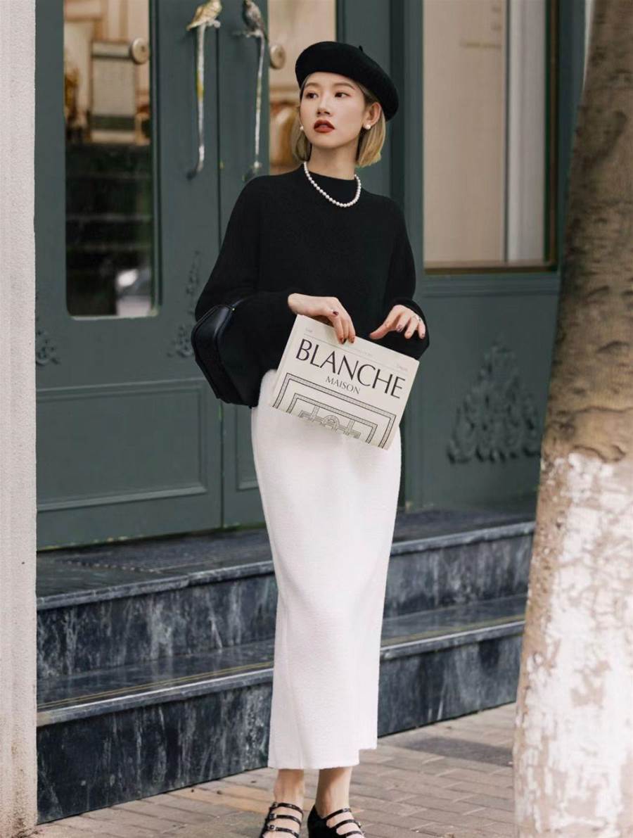 當然啦,如果屏幕前的你如今依舊處于職場當中的話,那麼在選擇長裙的時候煙管直筒的利落感就是最適合你的了,這個時候的顏色就可以將黑灰色或者是明度降低一些的色相屬性進行運用了喲。