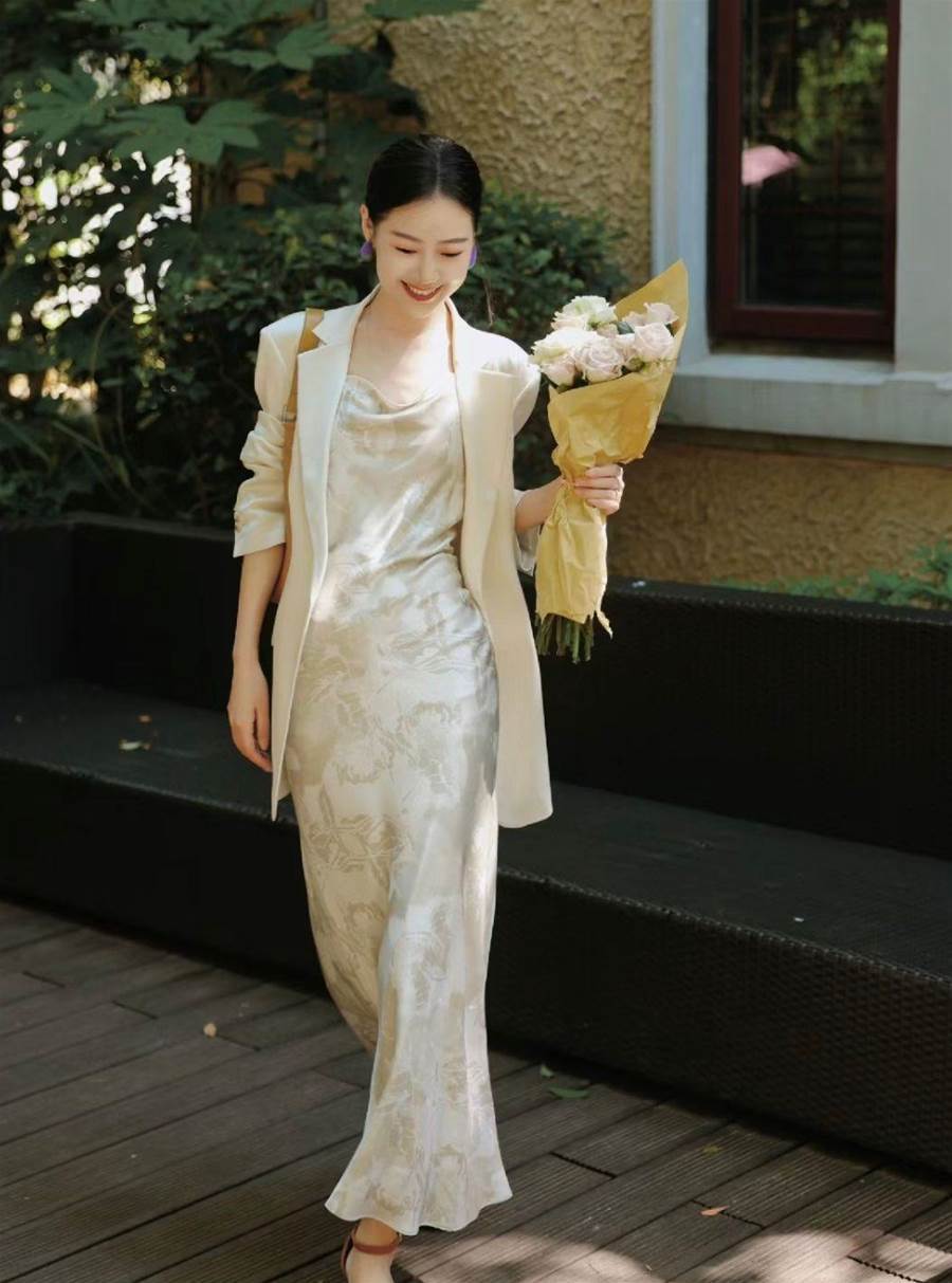 在到了四五十歲這個年齡階段的時候,當下春季的階段還是非常推薦大家可以將簡約感設計的淺色系長裙來進行搭配的,尤其是像香檳色或者是米白色這一類,它本身所襯托出來的感覺就非常的極具優雅和溫柔的視覺效應,也記得畫一個淡妝搭配一些與其比較契合的高級優雅感的首飾喲。