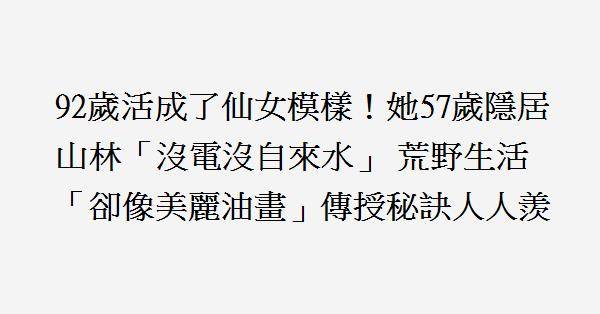 92歲活成仙女模樣!她57歲隱居山林「沒電沒自來水」 荒野生活「卻像美麗油畫」傳授秘訣人人羨