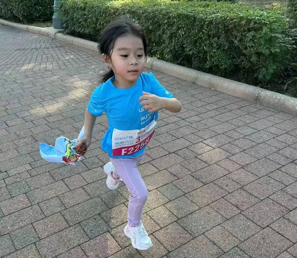 雖然是公益跑,但郭晶晶家的三個寶貝都沒有懈怠。她曬出小女兒的跑步萌照,從下圖可以看到,小可愛跑得好認真,干勁兒十足,頭髮都被汗水浸濕了,衣服似乎也被汗濕了,臉蛋兒略微紅潤,看上去又萌又可愛。看得出來,妹妹真的有在認真對待這場跑步比賽,真棒。
