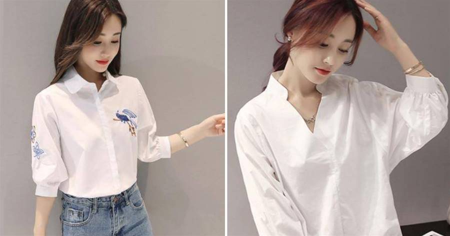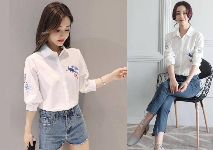寬松的版型不會給人束縛感,落肩袖也不會凸顯肩寬。精致的花鳥刺繡白襯衫氣質清新,凸顯文藝范。隱藏污漬的設計簡潔大方,不怕暴露。胡蝶結下擺可以遮蓋臀部的贅肉,隱藏的肉肉有很大的顯瘦效果。